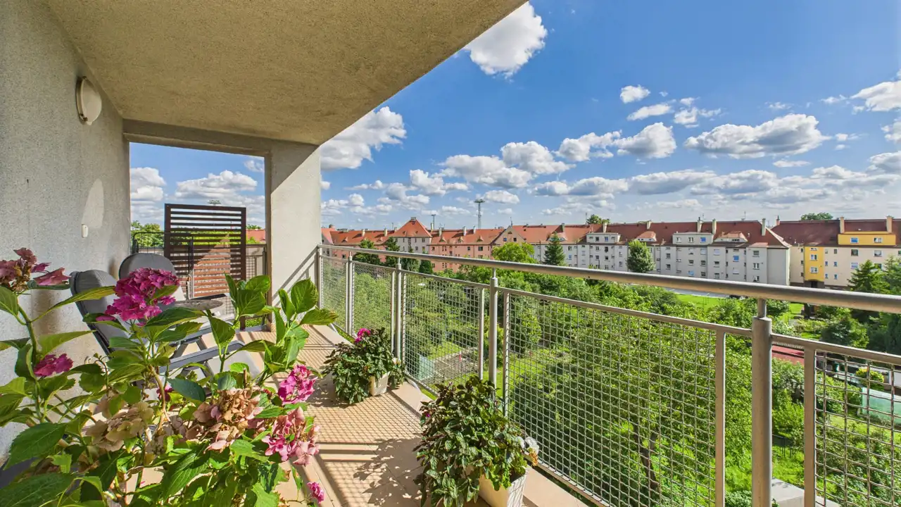 Zarówno balkon przy salonie, jak i ten przy sypialni pozwalają cieszyć się poranną kawą lub popołudniowym relaksem na świeżym powietrzu.