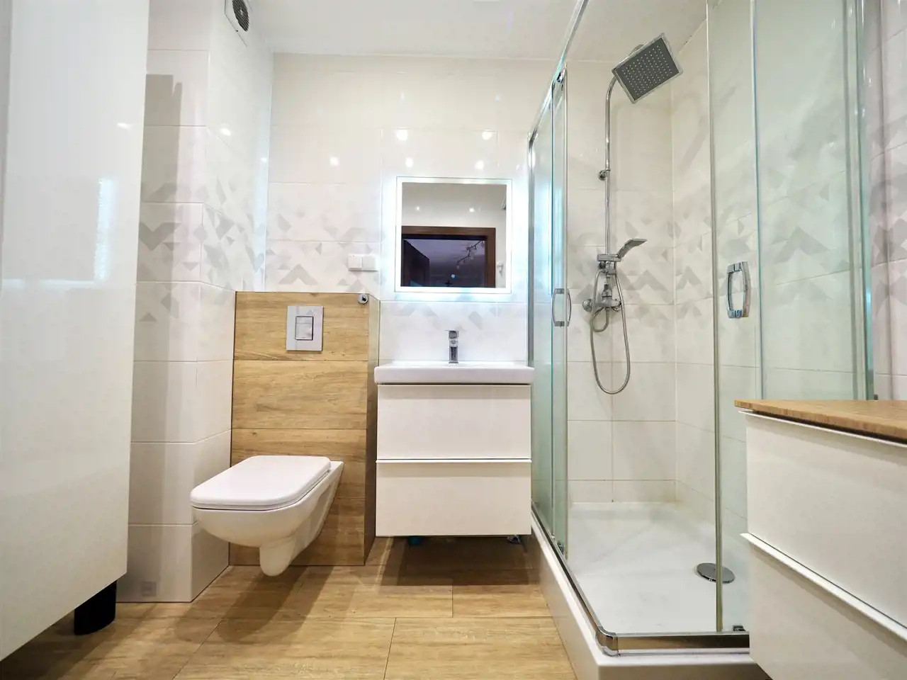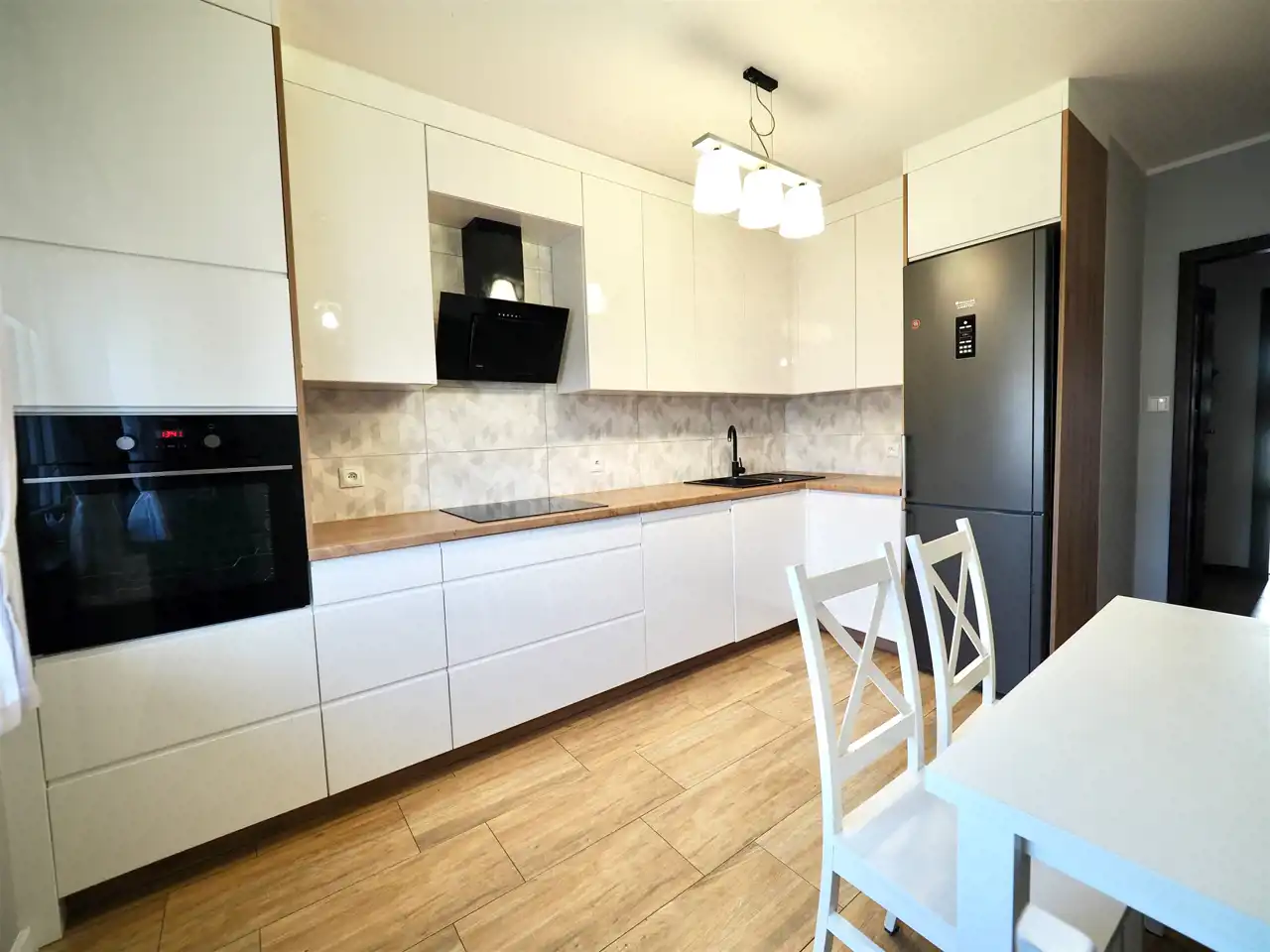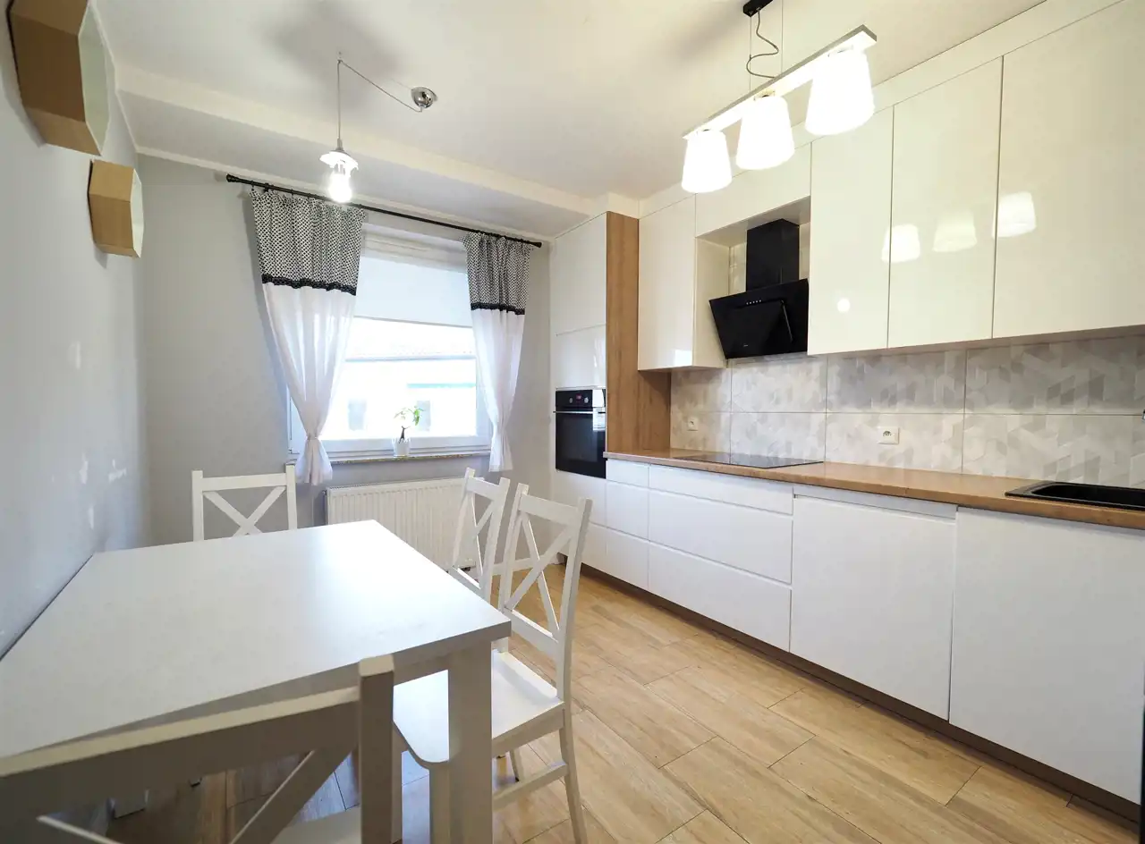 - Wyposażenie widoczne na zdjęciach + sprzęt Agd (zmywarka, lodówka, płyta indukcyjna, piekarnik, okap).