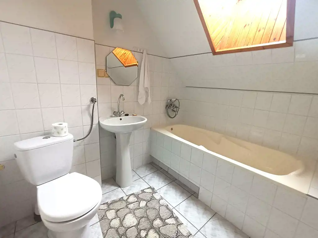 Na parterze: salon, kuchnia korytarz, łazienka z prysznicem i WC (po generalnym remoncie), dwie sypialnie, wiatrołap, kotłownia, pomieszczenie gospodarcze, garaż z kanałem samochodowym.