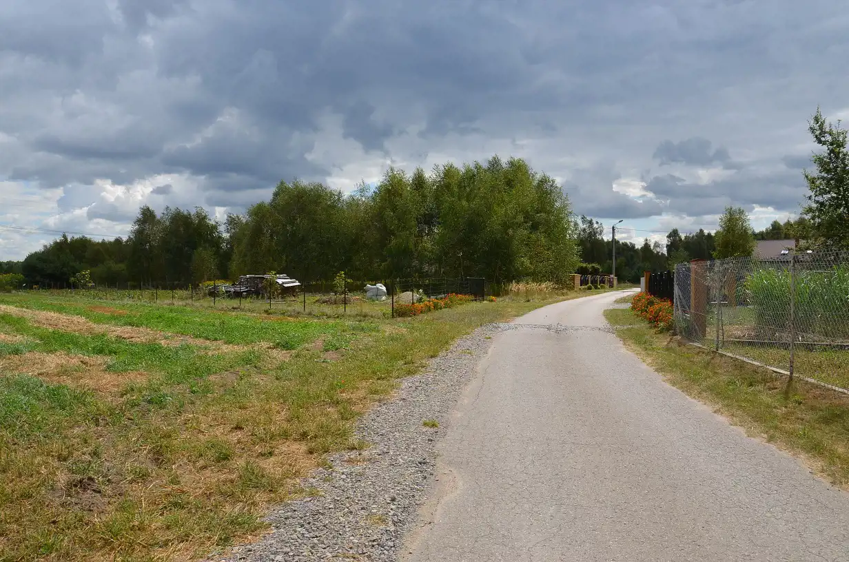 - Wymiary: szerokość od ulicy ok.16m ( w dalszej części ok.17m i ok.15m), szerokość na końcu działki gdzie znajduje się las ok.45m, długość ok.1km.