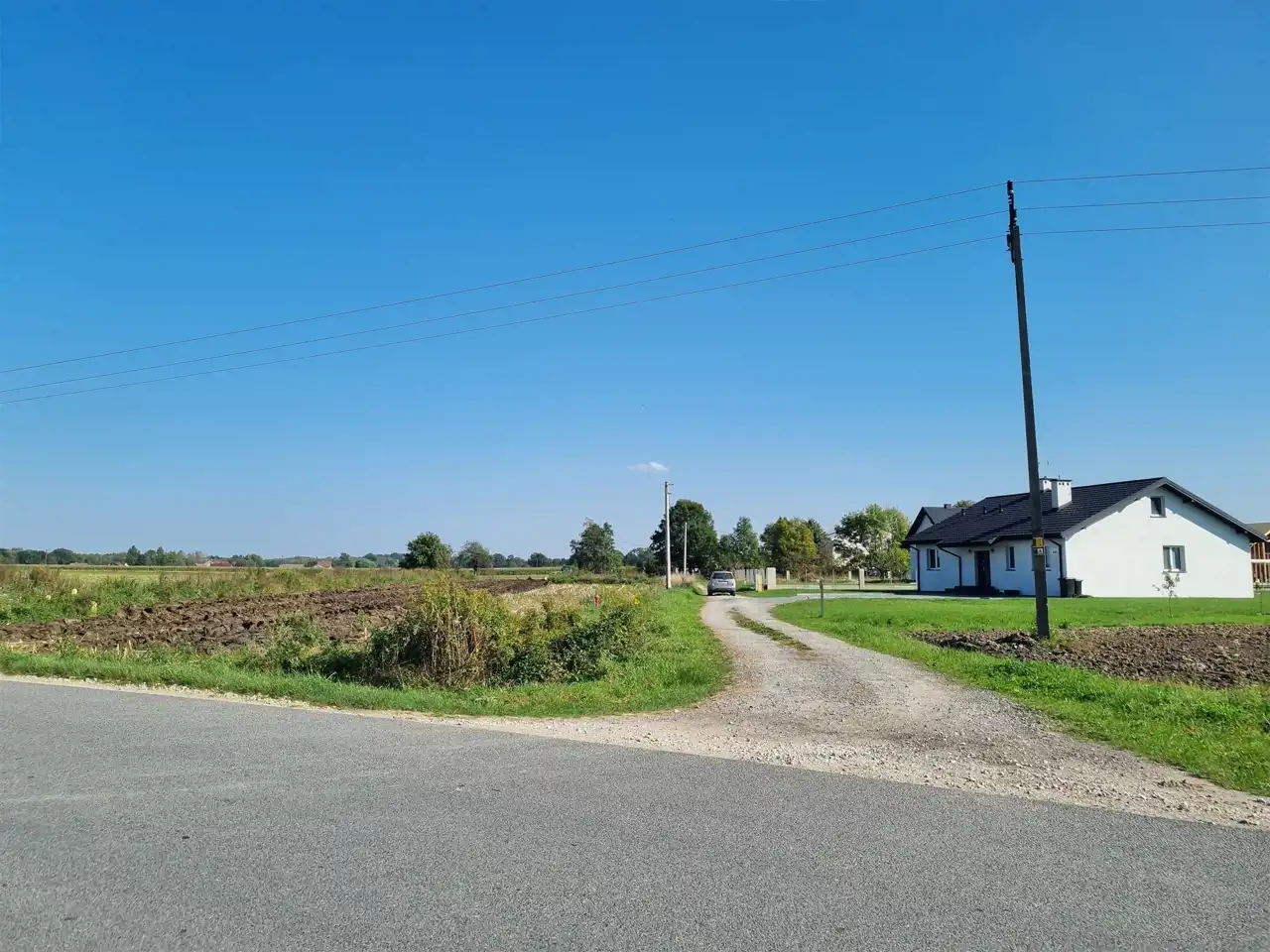 - Media Woda: w ulicy; Prąd: na działce; Gaz: na działce