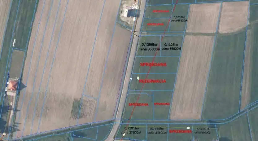 - 0,1401ha-pierwsza linia zabudowy, cena 42.000zł W TRAKCIE SPRZEDAŻY