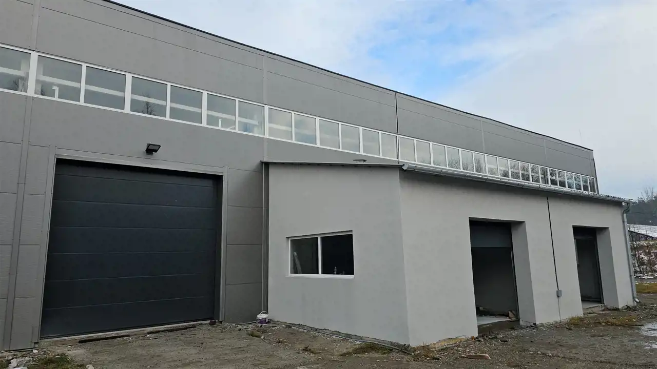 Hala PRODUKCYJNO-MAGAZYNOWA o łącznej powierzchni około 2142 m2 i wysokości około 8 metrów.