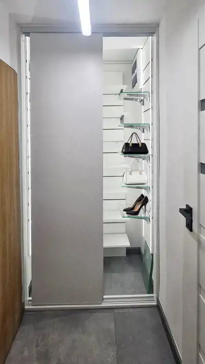 montaż szafy w zabudowie z podświetleniem w przedpokoju,