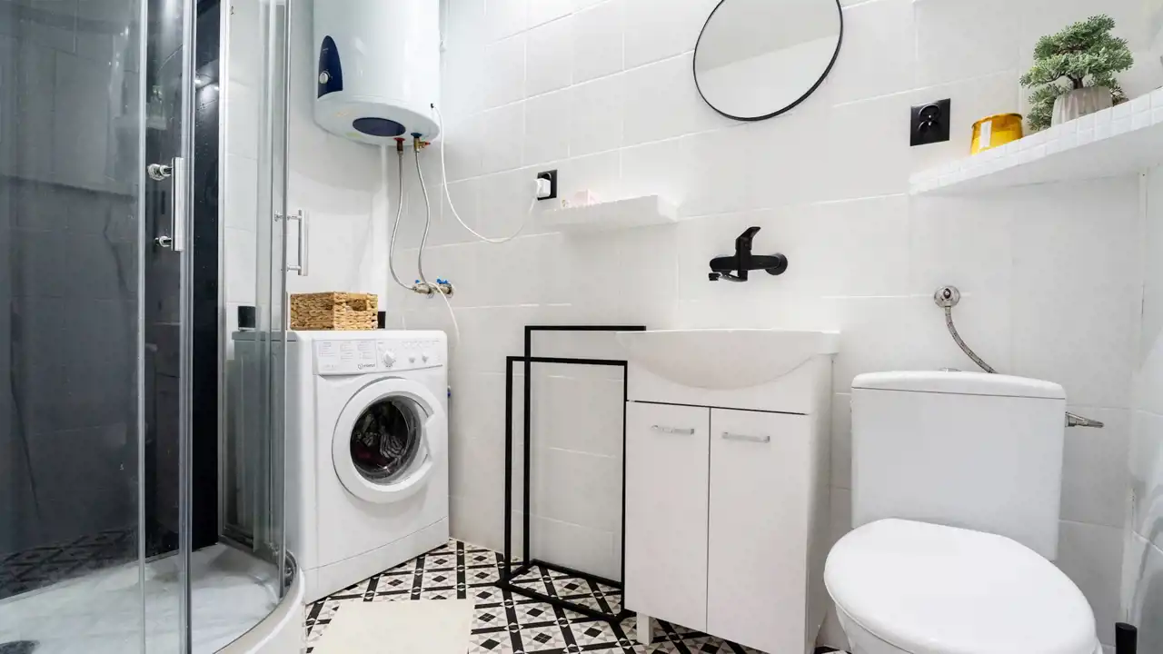 - Podgrzewanie wody za pomocą bojlera zamontowanego w łazience