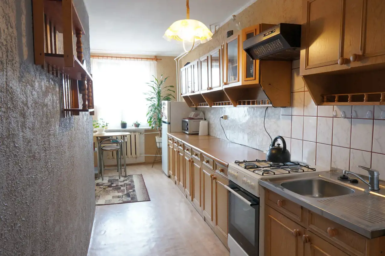 - Kuchnia – oddzielna, z meblami i podstawowym AGD (kuchenka, okap). Uwaga: istnieje możliwość wydzielenia z części kuchni małego, trzeciego pokoju (garderoby itp.);