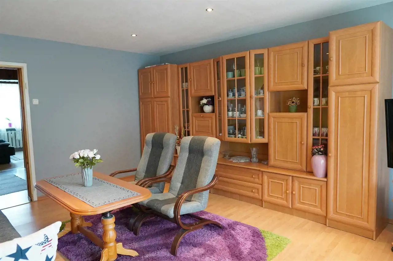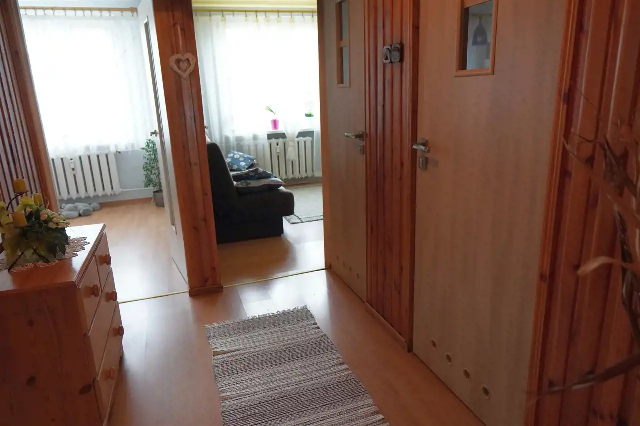 Mieszkanie posiada formę prawną jako lokal stanowiący odrębną własność z urządzoną KW. Wystawa okien na północ/południe. Nieruchomość bardzo dobrze ocieplona styropianem. Mieszkanie idealne dla rodziny lub osób starszych. Nieruchomość nadaje się również pod wynajem. Mieszkanie po częściowym remoncie (salon i pokój). Mieszkanie mieści się na parterze i posiada balkon o powierzchni 4,3 m2 od południa co daje dodatkowe miejsce do spędzania wolnego czasu. Mieszkanie o łącznej powierzchni użytkowej aż 64,20 m2. Do mieszkania przynależy również duża piwnica o powierzchni ok 13 m2. W mieszkaniu mamy położone na podłogach panele i płytki. W wejściu dodatkowo miejsce na dużą szafę. Mieszkanie posiada dobre okna typu PCV. Kuchnia z oknem otwarta na salon z jadalnią wyposażona w starsze meble. Ściany proste, częściowo do odświeżenia. W części mieszkania mamy założone sufity podwieszane z oświetleniem LED. Mieszkanie z możliwością do zamieszkania lub remontu. W mieszkaniu mamy zamontowane na podłodze panele w pokojach a w kuchni, łazience, WC i przedpokoju płytki. Wejście do klatki schodowej budynku zabezpieczone elektrozaczepem otwieranym z domofonu.
