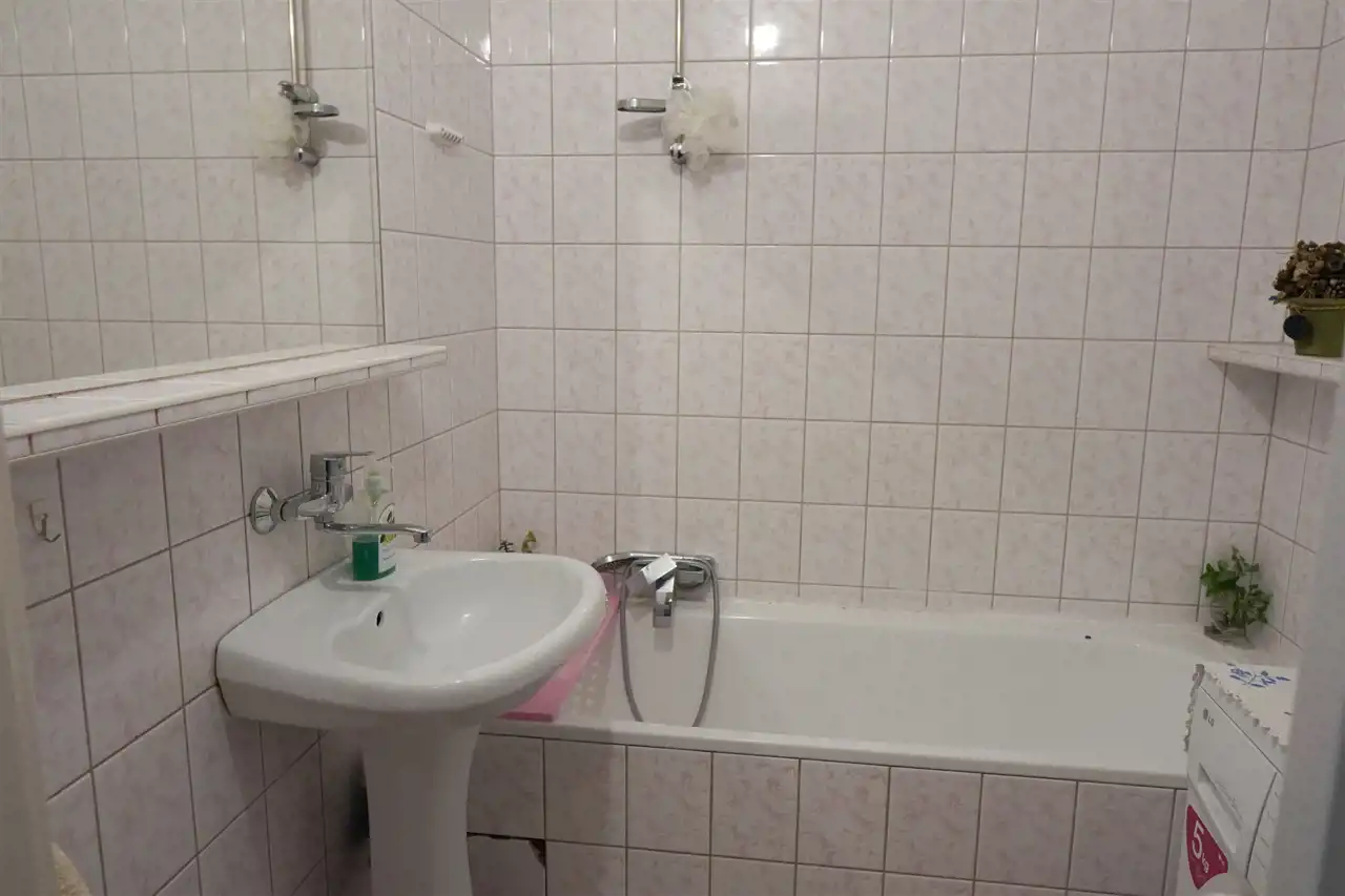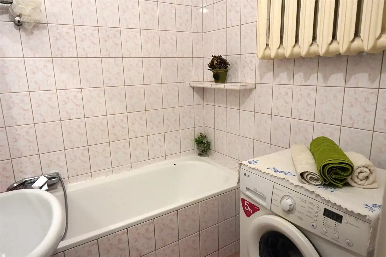 Zdjęcia przedstawiają aktualny stan nieruchomości. Łazienka z wanną, umywalką, lustrem, pralką. Dogodny dojazd do centrum zapewnia komunikacja miejska. W pobliżu rozwinięta infrastruktura handlowo - usługowa: sklepy, lokale usługowe, fryzjerzy, przedszkola i szkoły, restauracje. Mieszkanie również idealne na wynajem dla studentów dojeżdżających na uczelnie Krakowskie czy Śląskie.
