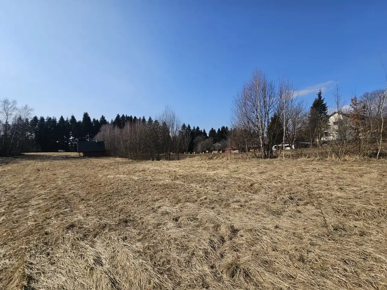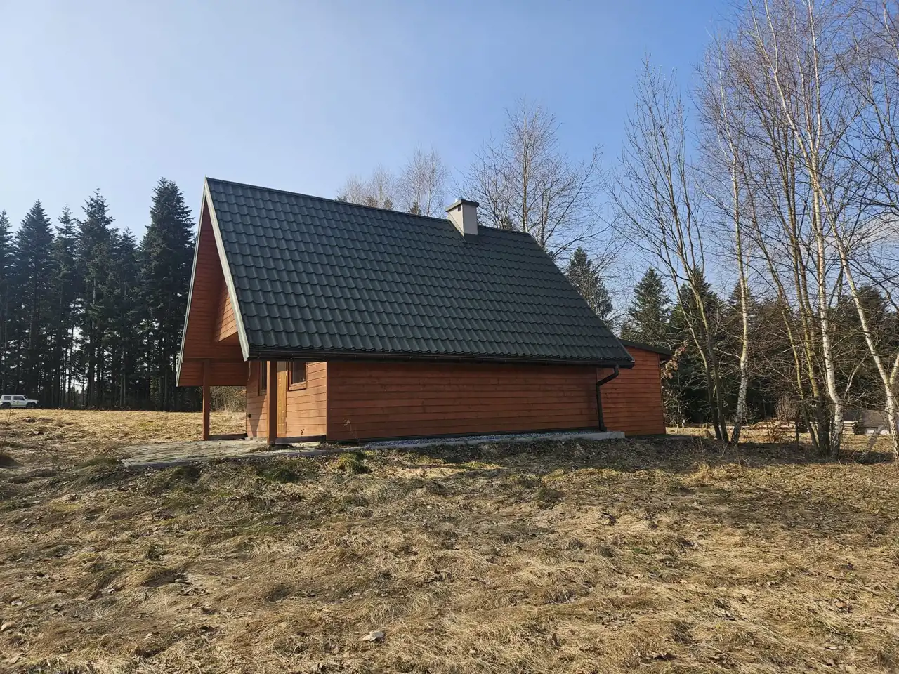 - Na terenie nieruchomości znajduje się już jeden wybudowany domek letniskowy, który może pełnić funkcję obiektu pod wynajem, domku gościnnego lub zaplecza podczas realizacji dalszej zabudowy;