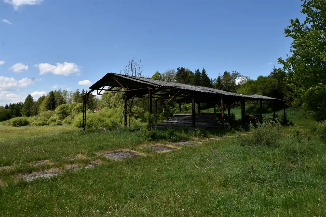 Działka płaska o nieregularnym kształcie zbliżonym do prostokąta na której znajduje się budynek gospodarczy- wiata o pow. zabudowy 258 m2.