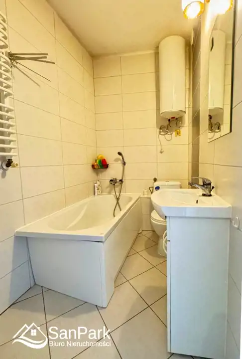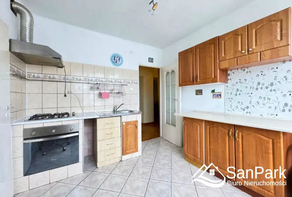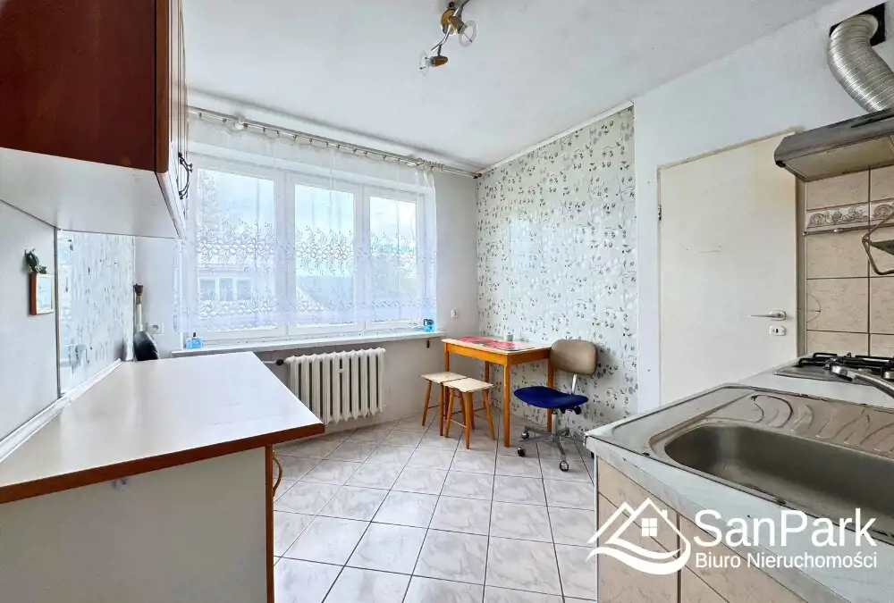 Mieszkanie jest dwustronne i bardzo dobrze doświetlone, dzięki czemu przez cały dzień panuje tu jasny, przyjemny klimat. Obecny układ pomieszczeń pozwala zarówno na wygodne zamieszkanie jednej rodziny, jak i na wydzielenie dwóch niezależnych apartamentów o powierzchniach ok. 45 m² i 32 m² – każdy z własną kuchnią i łazienką. To doskonała propozycja dla inwestora lub dla osób, które chciałyby połączyć mieszkanie z możliwością wynajmu drugiej części.