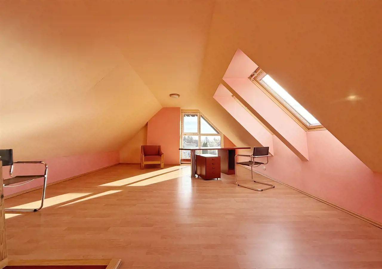 Na parterze znajduje się salon z kominkiem, część przeznaczona na jadalnię, kuchnia, łazienka, przedpokój, wiatrołap oraz wejście do garażu. Na piętrze 3 oddzielne pokoje oraz duża łazienka ,przedpokój oraz garderoba na półpiętrze, na poddaszu przestrzeń do własnego zaaranżowania.