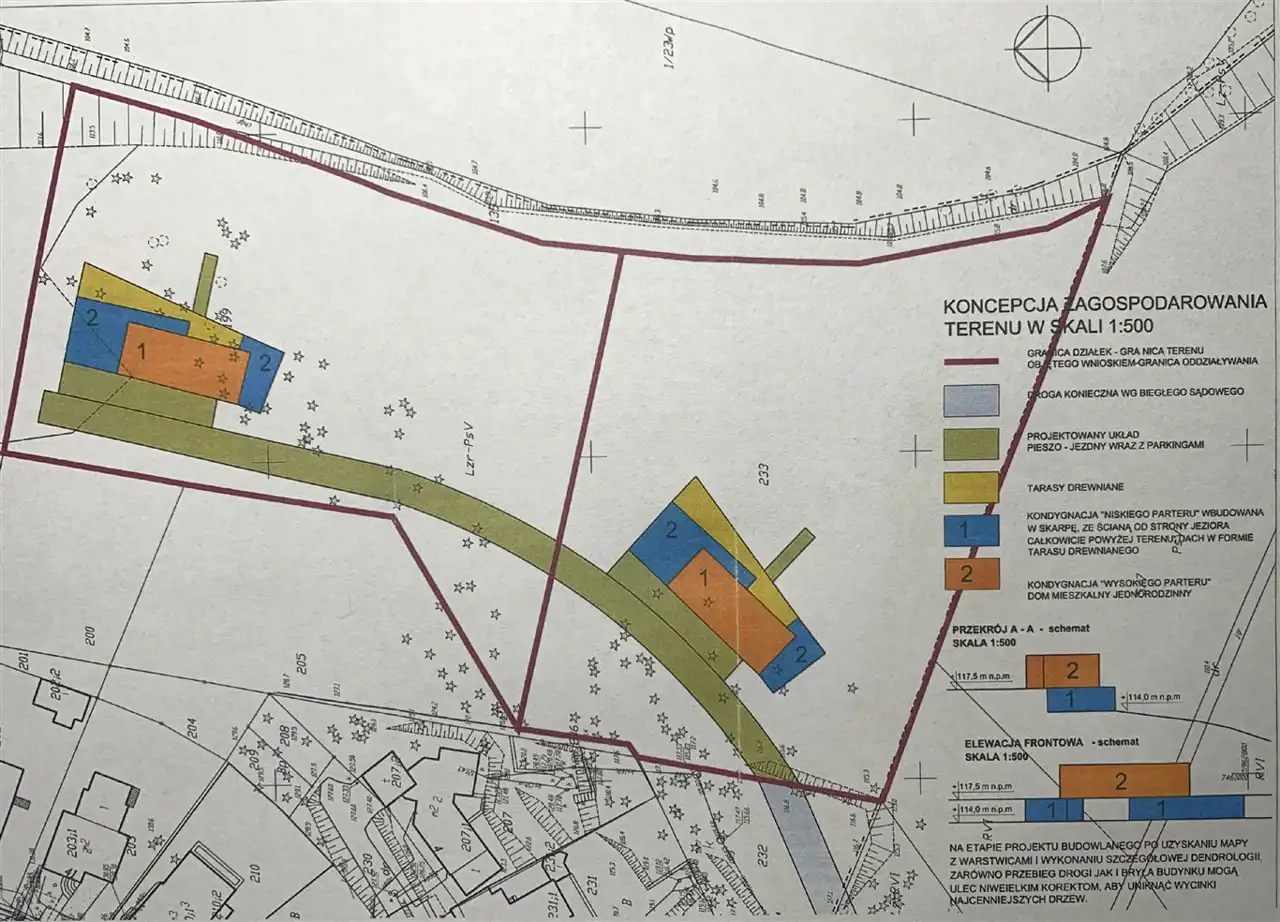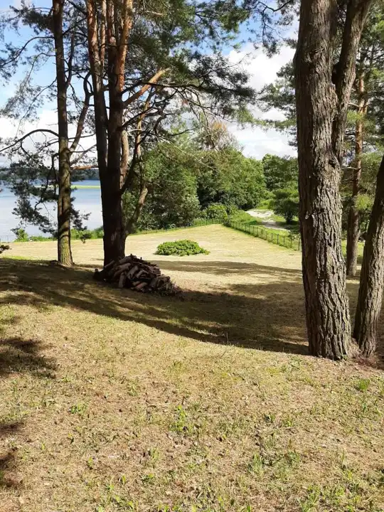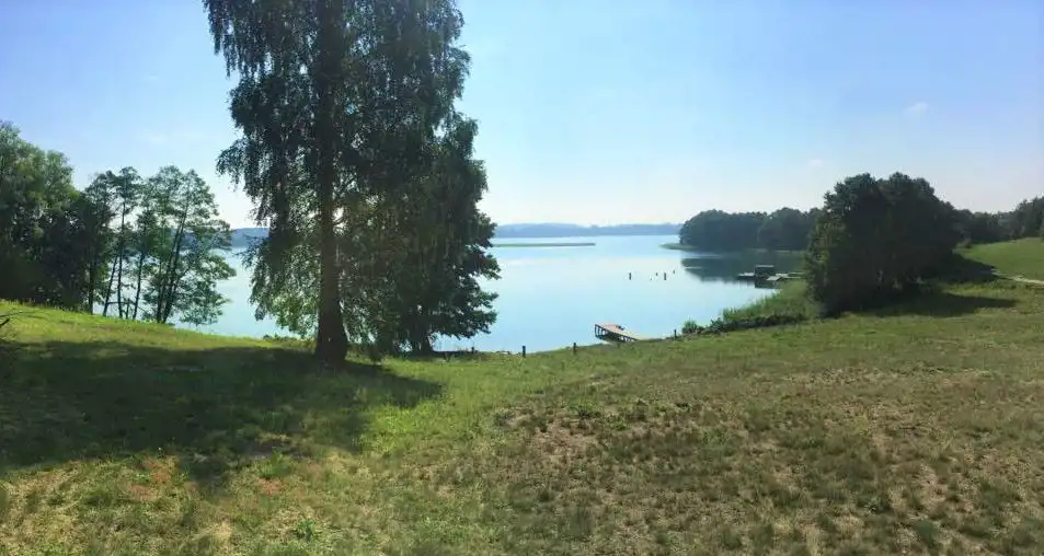 Działka lekko pochylona co zapewnia piękny widok na jezioro. Dojście do wody łagodne. Wszystkie media : gaz, wodociąg, kanalizacja, prąd.