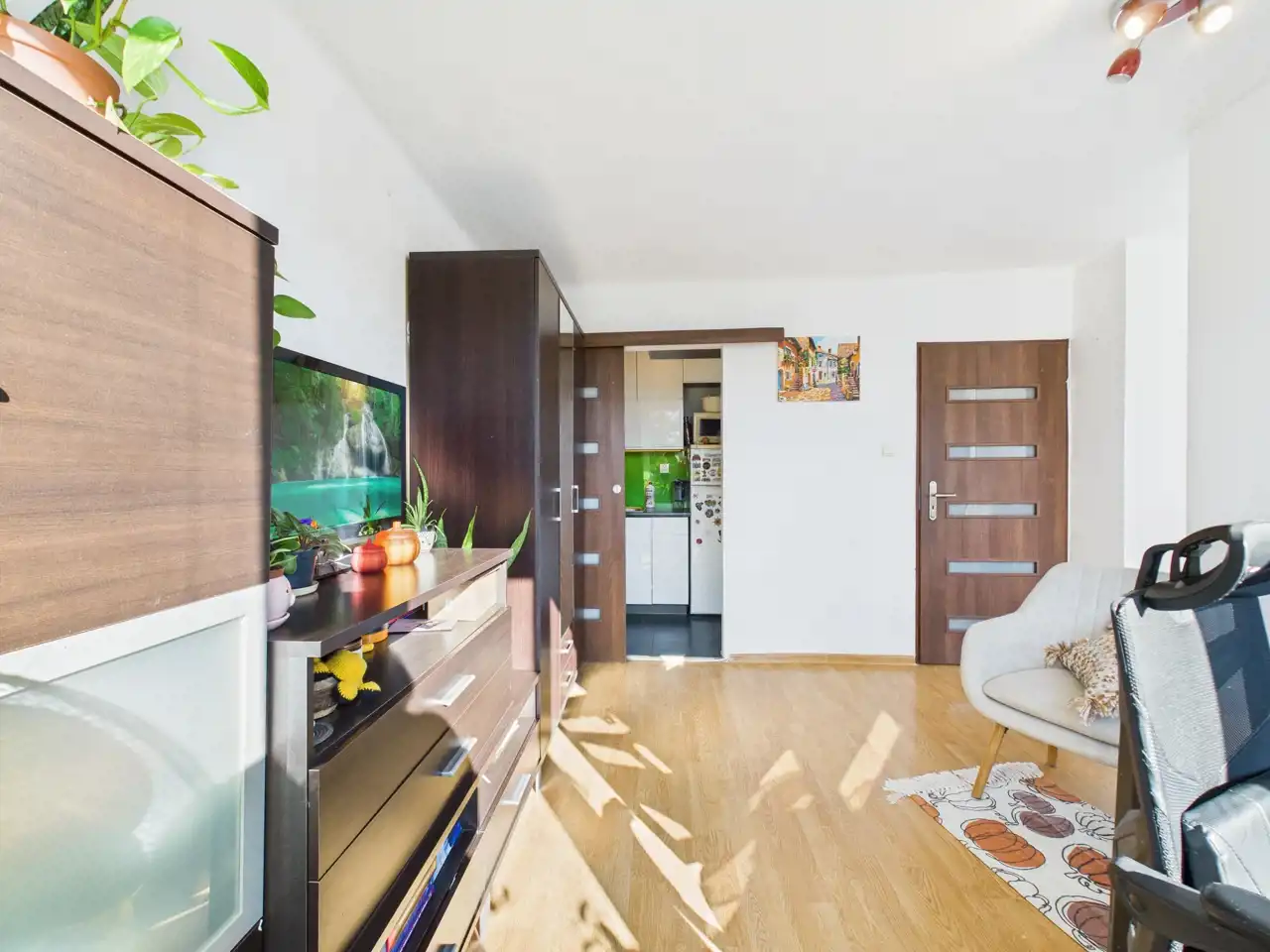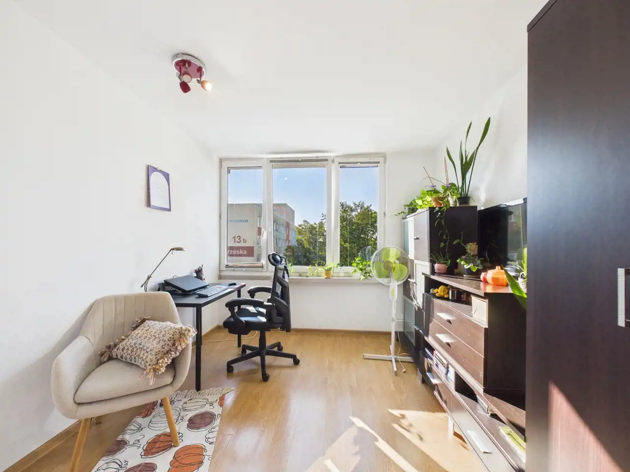 Mieszkanie jest słoneczne i bardzo ciepłe.