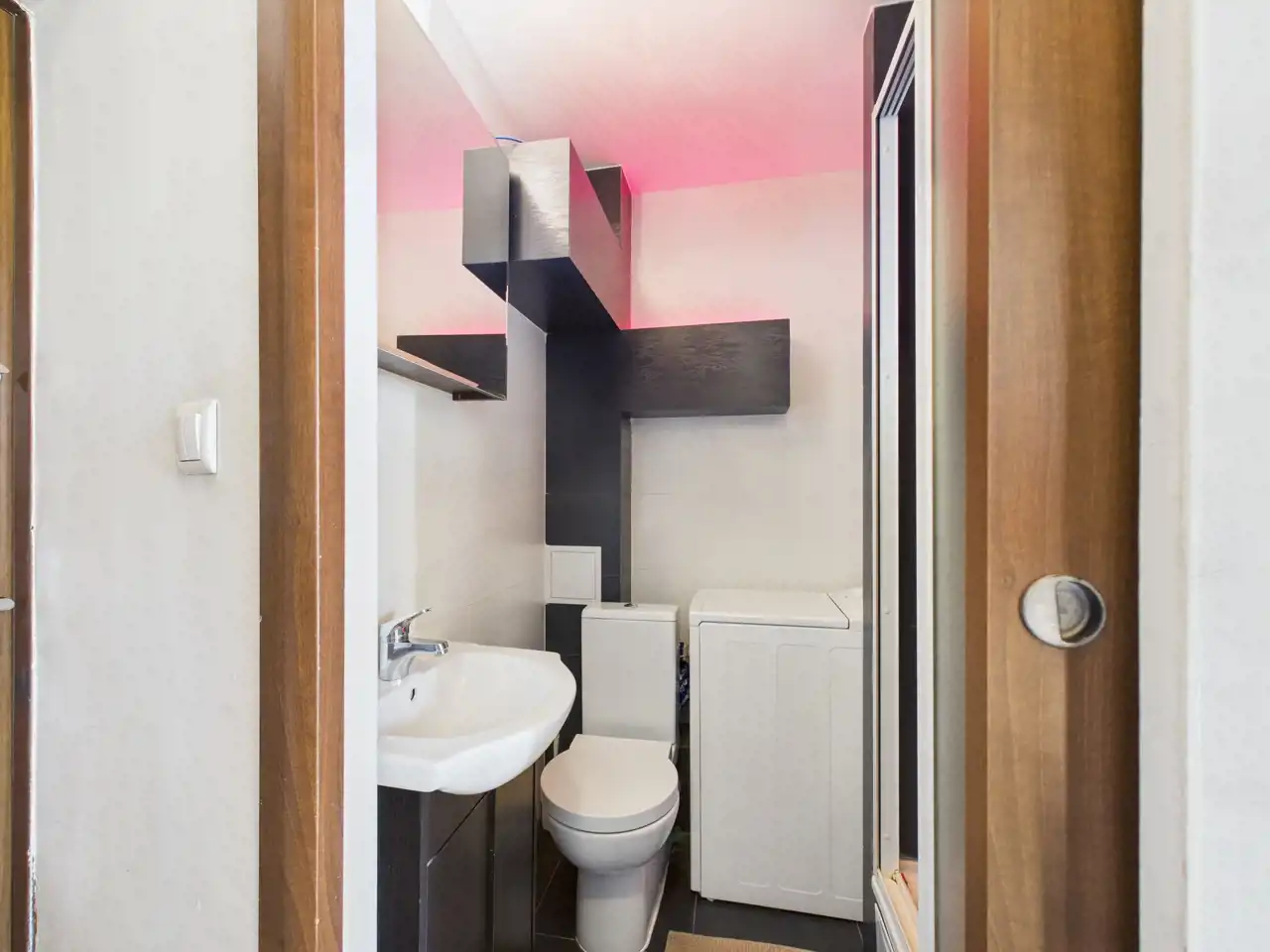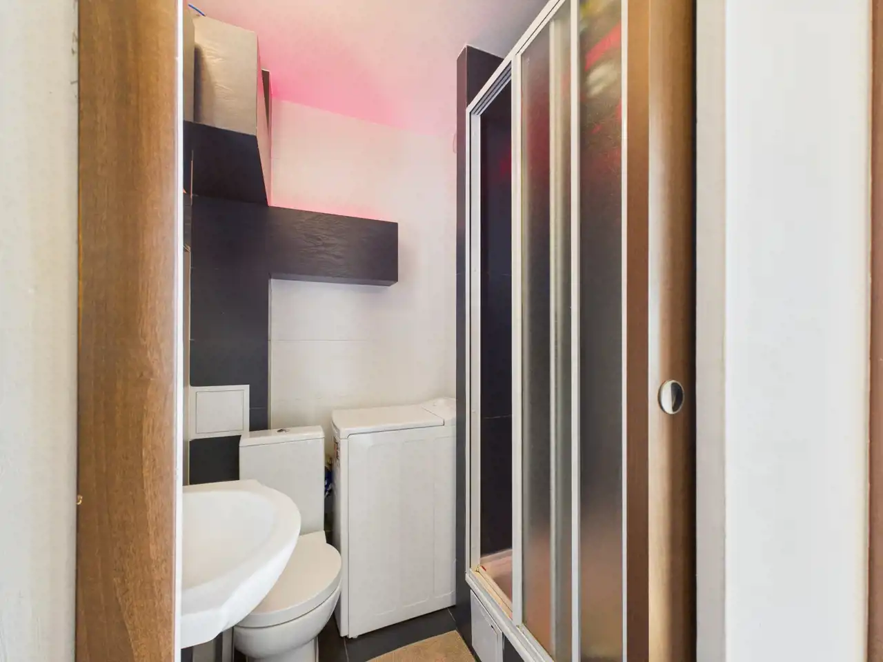- łazinka z wc i z miejscem na pralkę i kabiną prysznicową