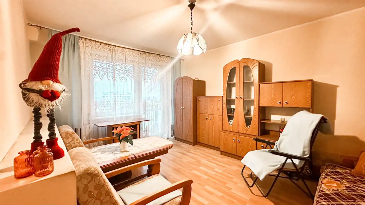Mieszkanie o powierzchni 35,8m2, do kapitalnego remontu, ale z funkcjonalnym układem: dwa oddzielne pokoje z balkonem, osobna kuchnia, łazienka i przedpokój.