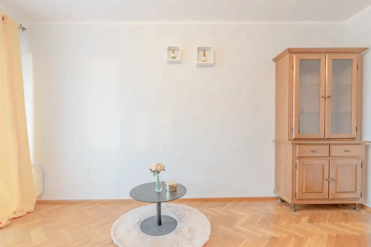 Na powierzchnię użytkową 39m2. składa się słoneczny salon ok 15m2. z wyjściem na balkon z widokiem na podwórko, oddzielna kuchnia z dużym oknem, sypialnia w kształcie kwadratu ok. 9m2., łazienka z wc oraz przedpokój.