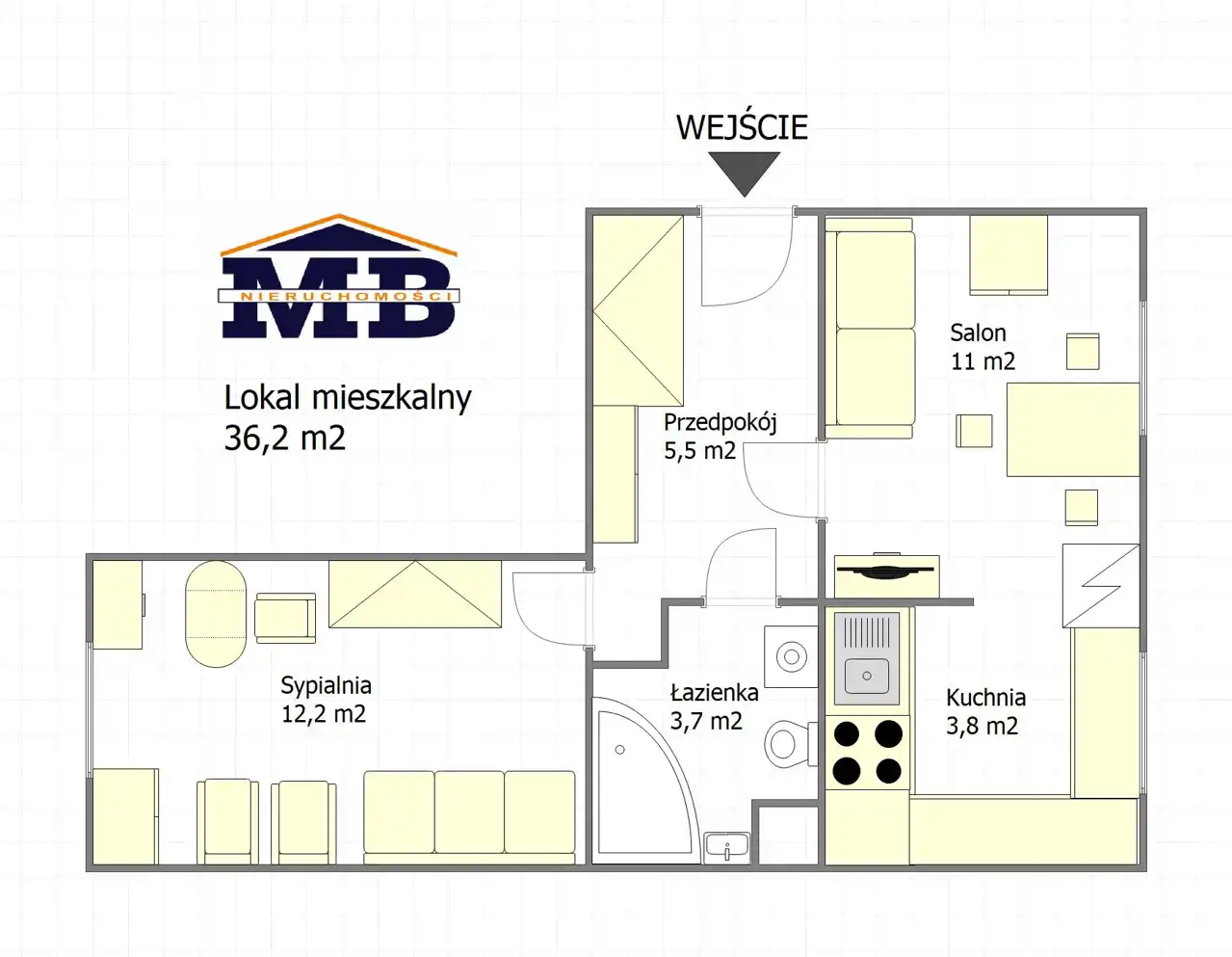 - Charakterystyka mieszkania 36.2 m2, 2 pokoje