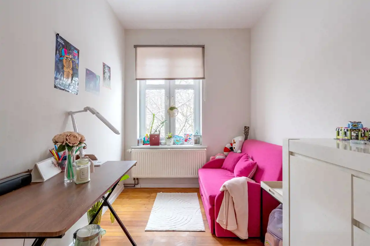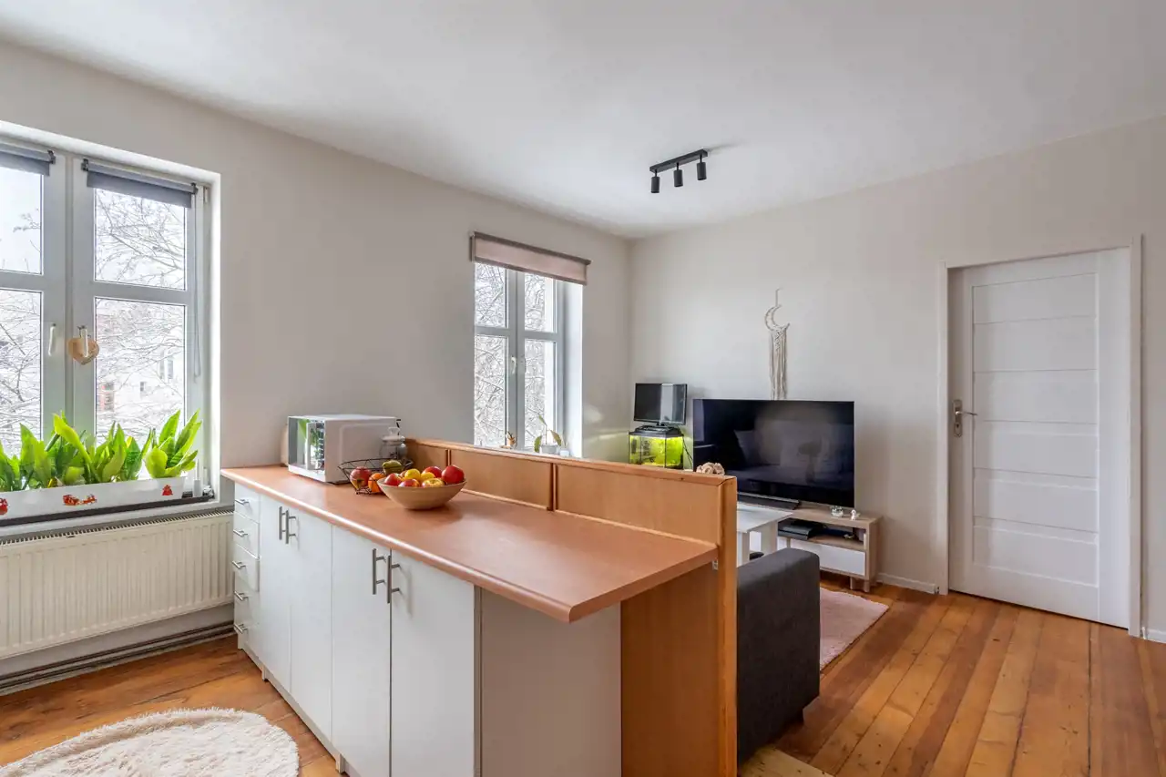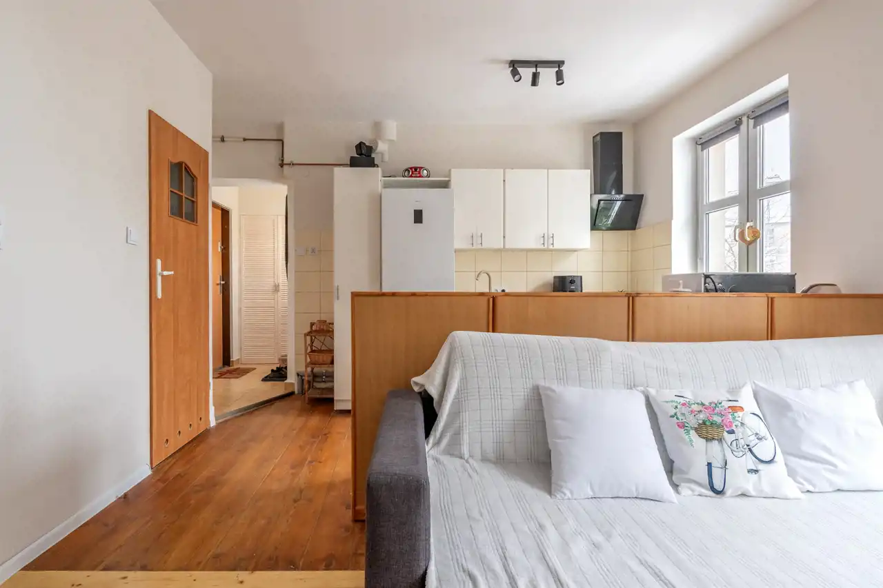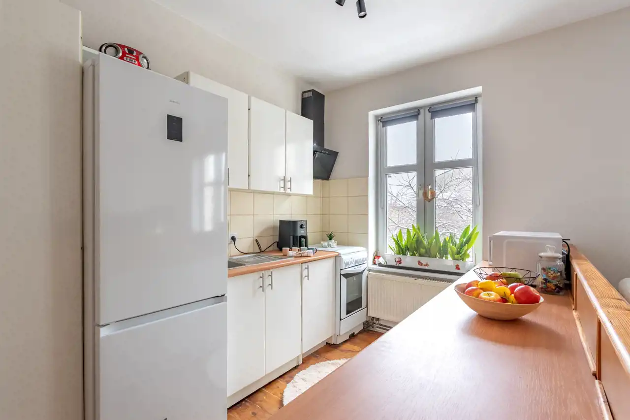 Mieszkanko posiada fajny klimat i nietuzinkową przestrzeń. Z okien widok na ładnie zagospodarowane podwórko. Wykonano w nim gruntowny remont. Wymieniono całą instalację elektryczną i wodno-kanalizacyjną, okna, drzwi zewnętrzne i wewnętrzne. W łazience glazura i terakota. Na podłodze piękna, zadbana deska sosnowa. Ściany wyszpachlowane i pomalowane.