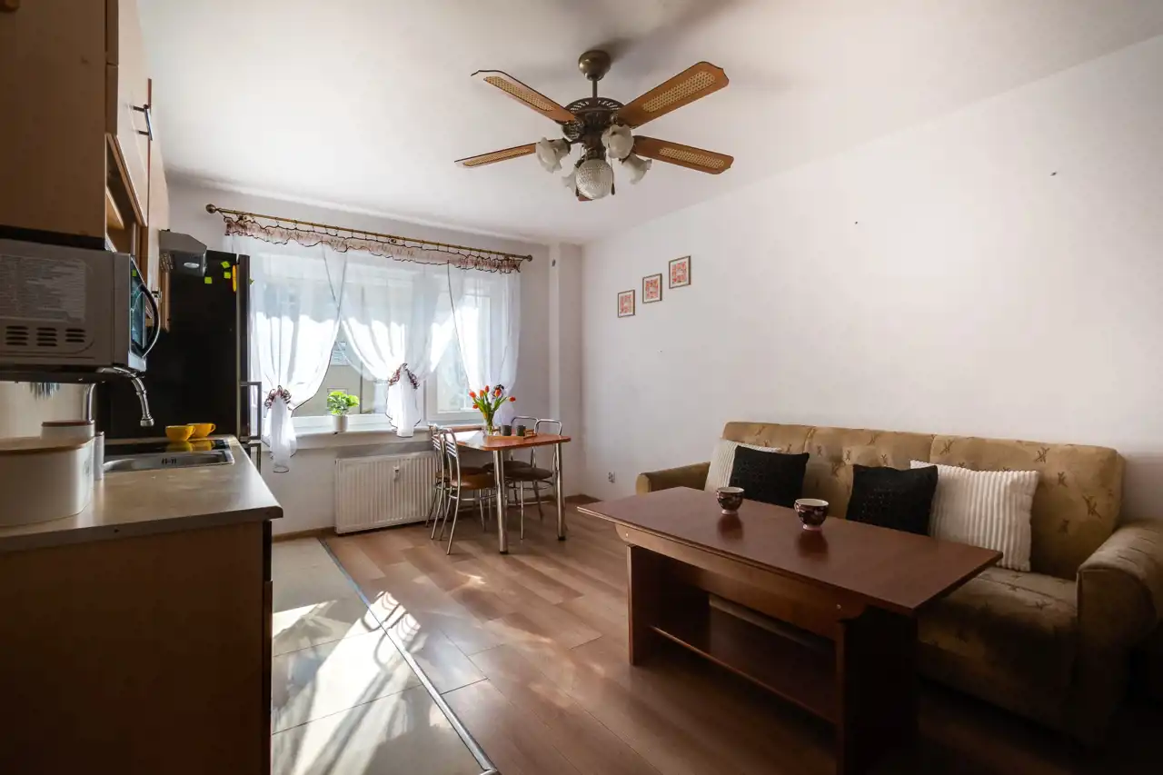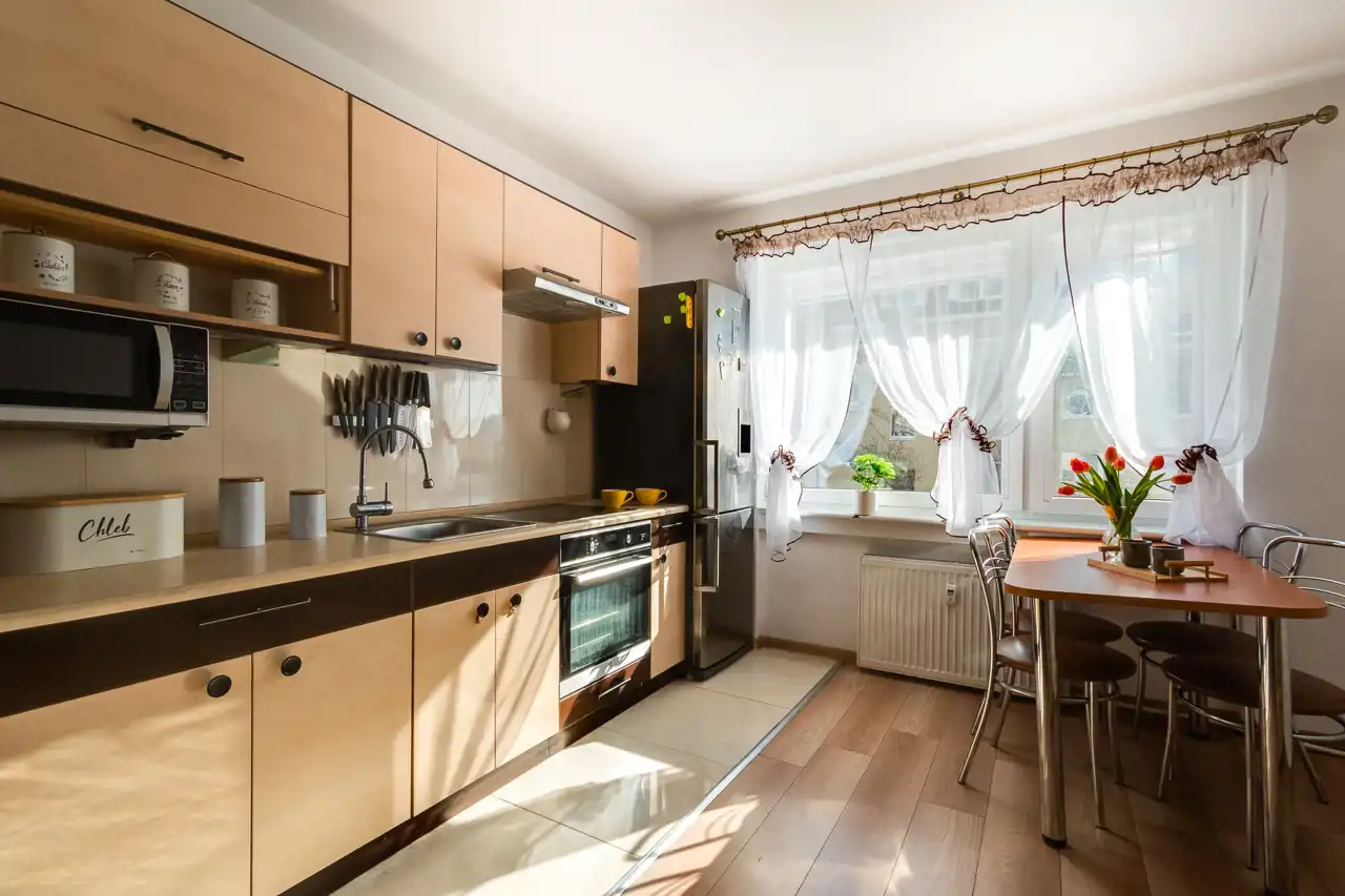 Mieszkanie w pełni umeblowane, wyposażone w sprzęt AGD oraz szafy.