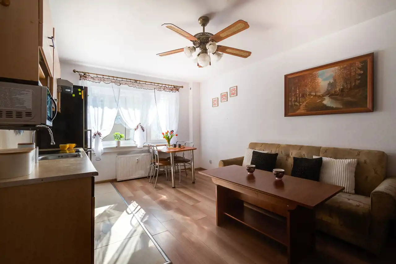 Duet Broker oferuje do sprzedaży w pełni umeblowane dwupokojowe mieszkanie o pow. ok 36m2. Blok, w którym znajduje się nieruchomość usytuowany jest przy ul. PORANNEJ 8A -osiedle Gutkowo. Mieszkanie znajduje się w malowniczej i spokojnej okolicy i mieści się na parterze budynku. Mieszkanie zadbane, bardzo słoneczne, umeblowane i dostępne od zaraz. Miejsce parkingowe za szlabanem tuż przy bloku. Zapraszam do szczegółowego zapoznania się z ofertą!