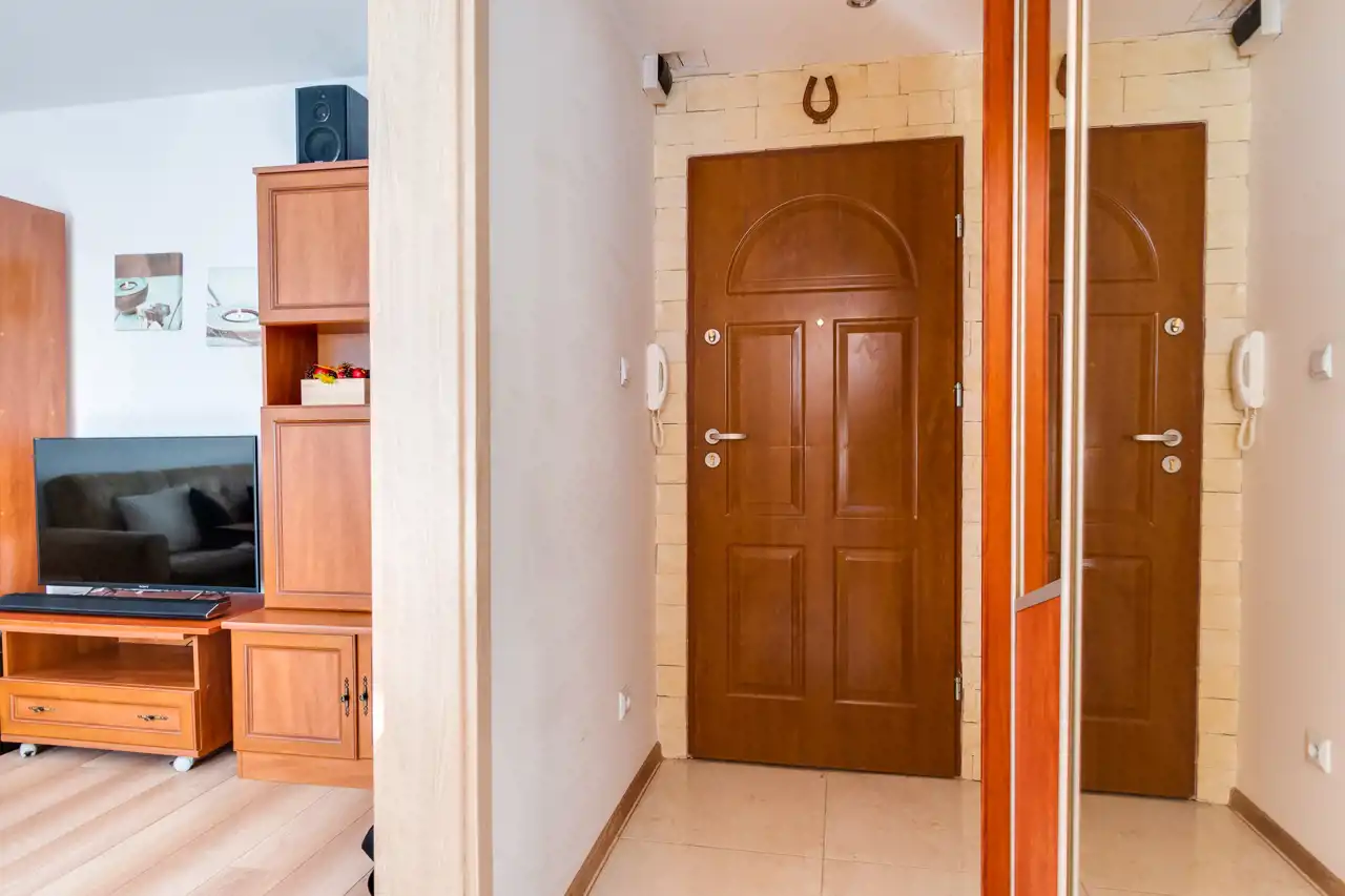 - przedpokoju z szafą w zabudowie