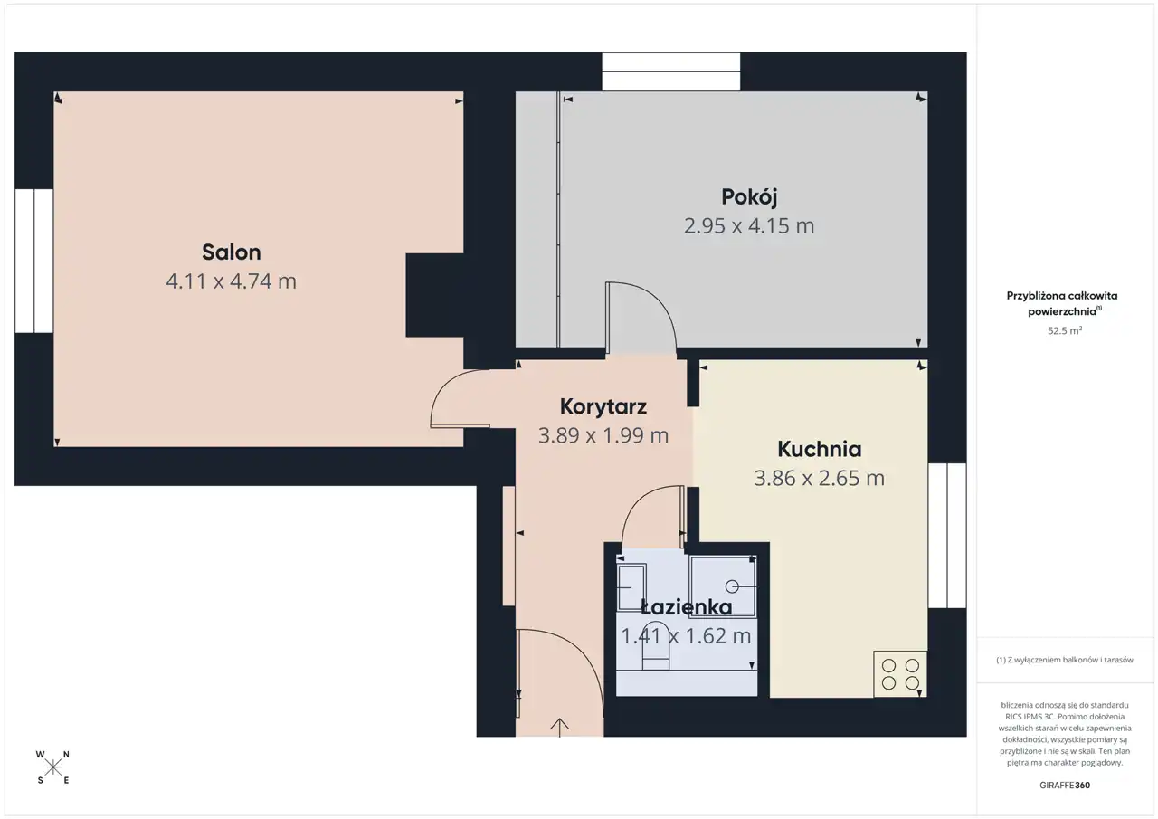 - Charakterystyka mieszkania 58.1 m2, 2 pokoje