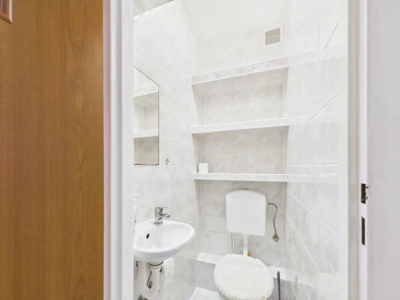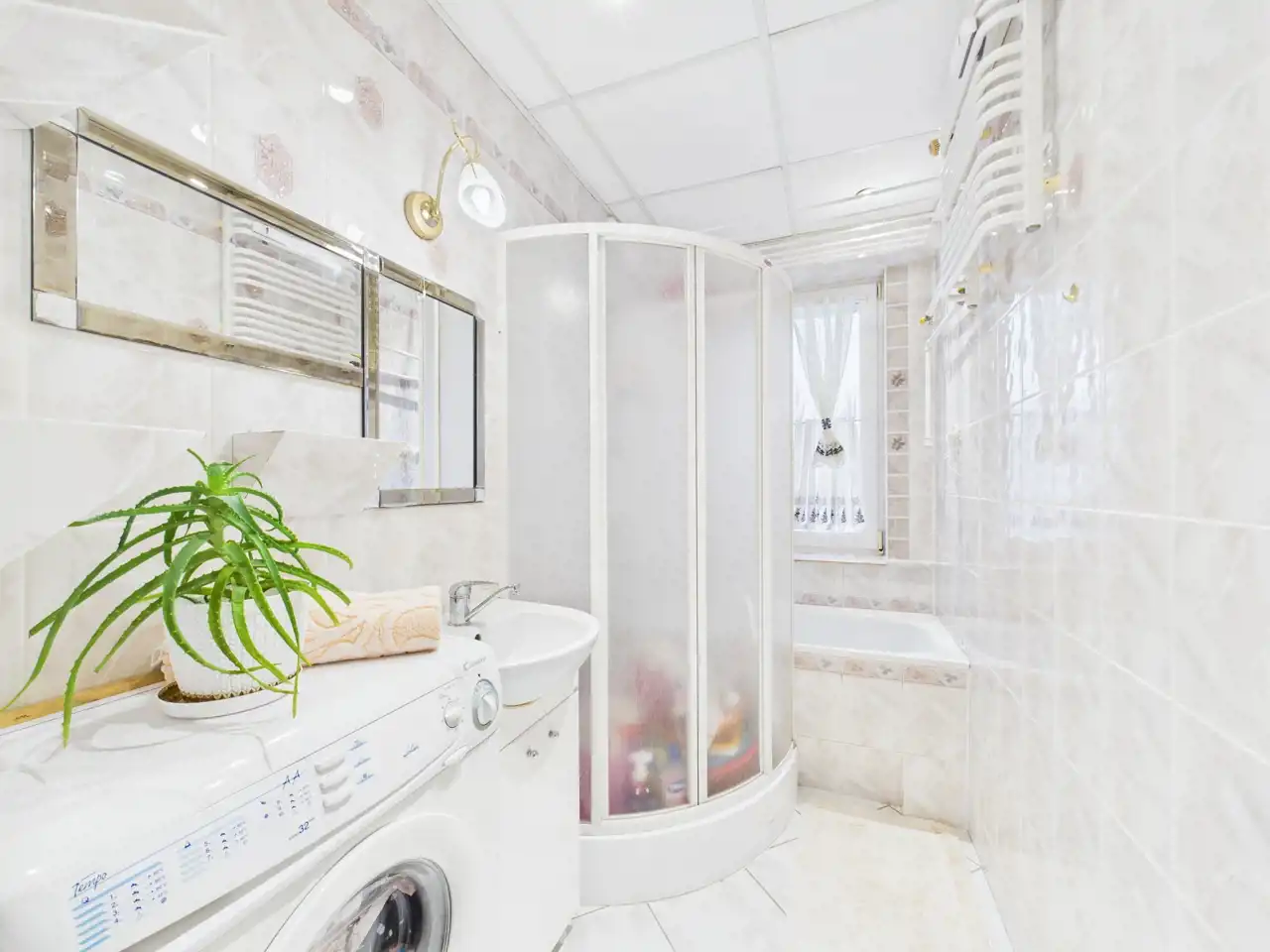 Łazienka z oknem, wyposażona jest zarówno w wannę, jak i kabinę prysznicową. Wyłożona jest ona glazurą i terakotą. Wc również wykończone glazurą i terakotą.