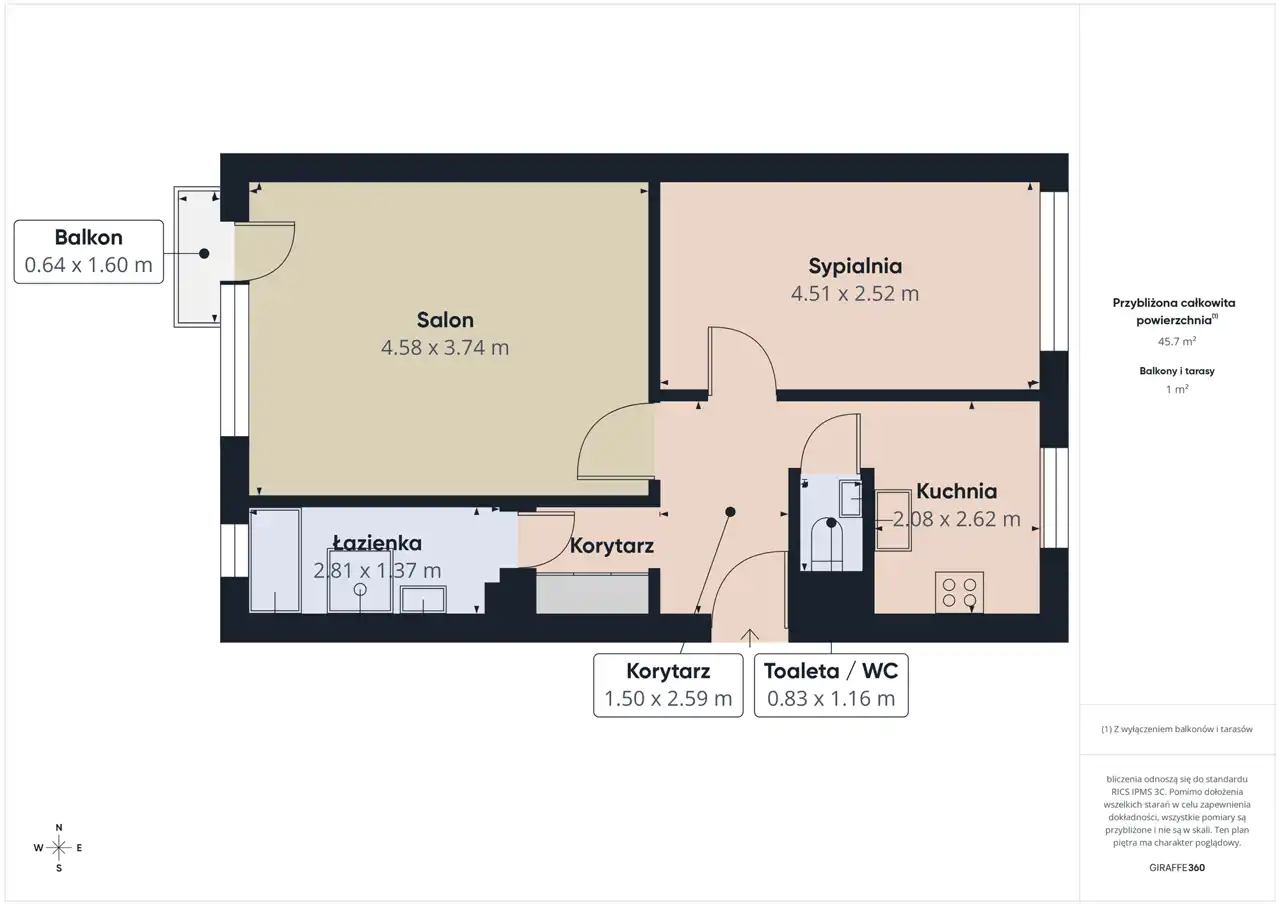 - Charakterystyka mieszkania 48.3 m2, 2 pokoje