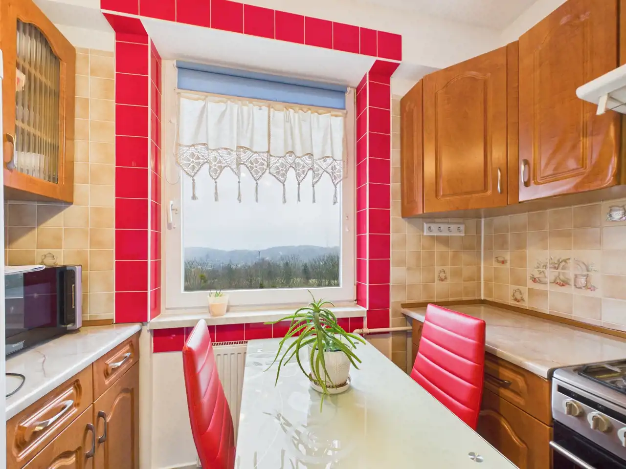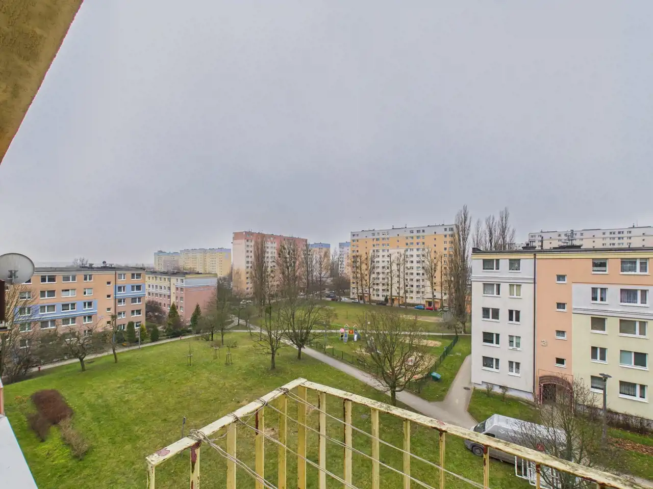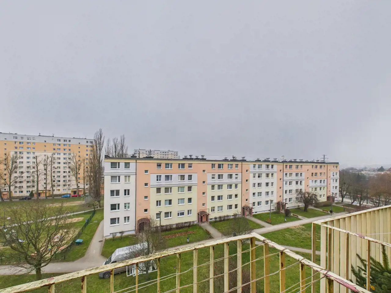 Mieszkanie jest rozkładowe i funkcjonalne. Z okien kuchni i sypialni widok na panoramę miasta, w tym na zieleń - ogródki działkowe i las w oddali. Z salonu widok na podwórko.