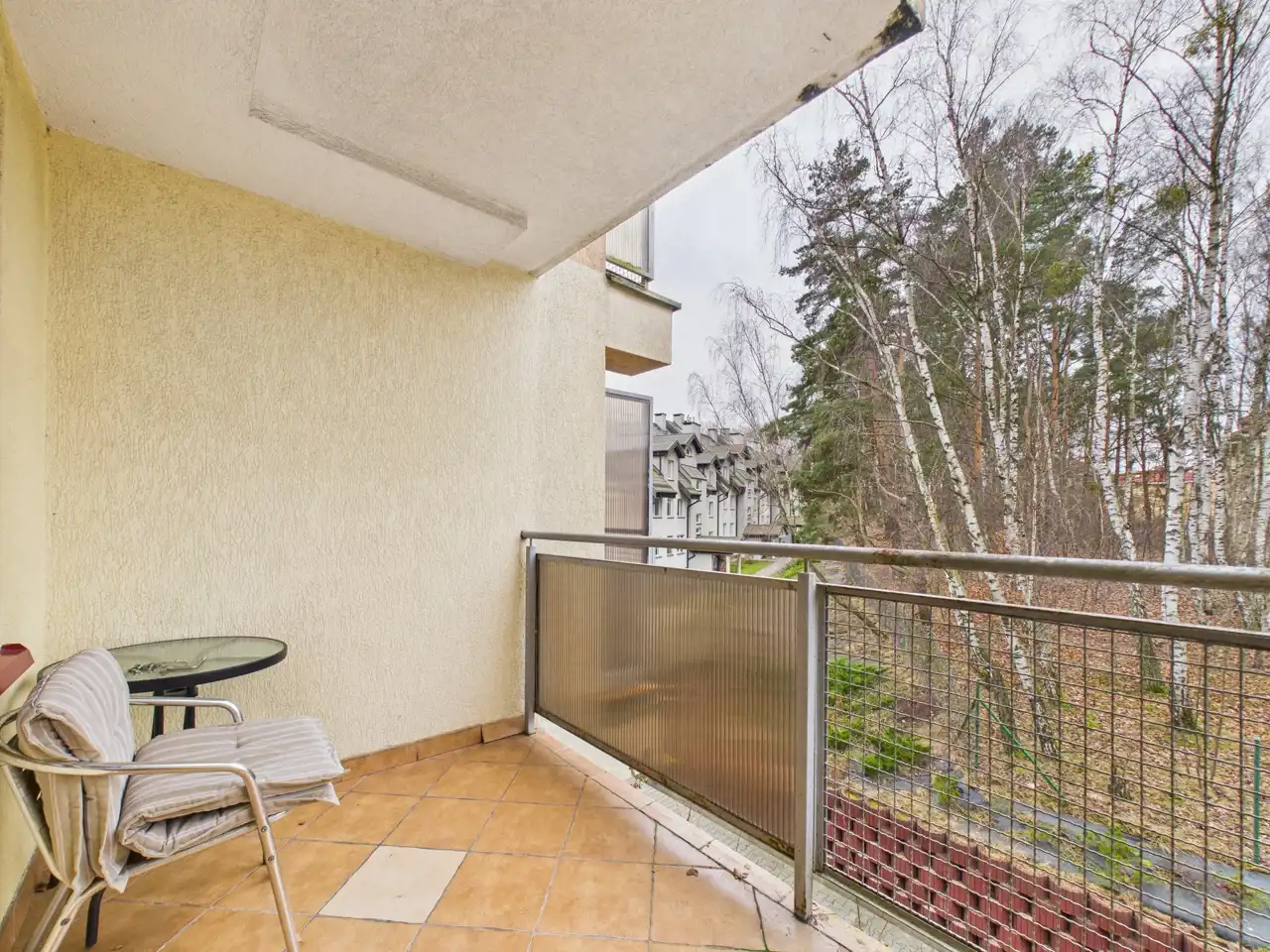 Dodatkowym atutem nieruchomości jest przestronny balkon typu loggia o powierzchni 6 m², z którego rozpościera się widok na zielony skwer porośnięty brzózkami — idealne miejsce na poranną kawę lub chwilę relaksu po pracy.