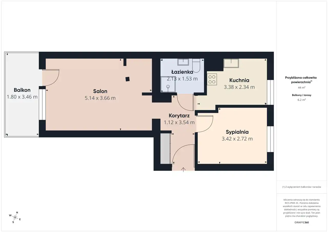 - Charakterystyka mieszkania 43.75 m2, 2 pokoje