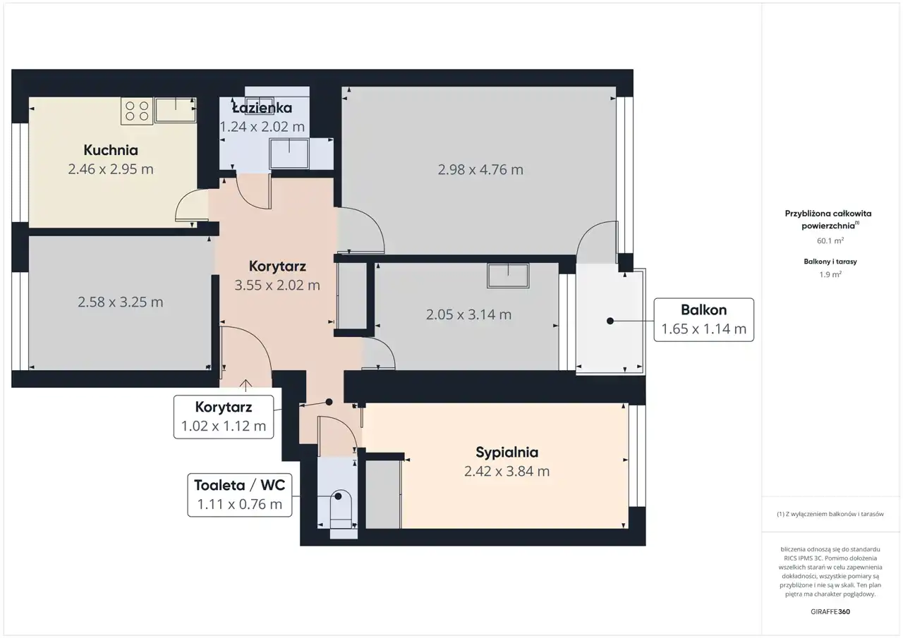 - Charakterystyka mieszkania 61.6 m2, 5 pokoi