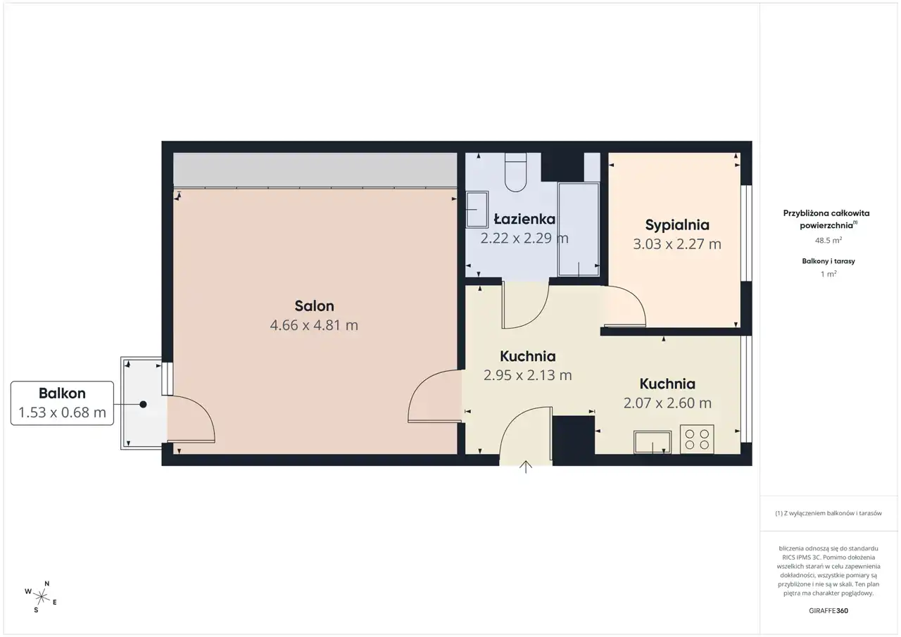 - Charakterystyka mieszkania 48 m2, 2 pokoje