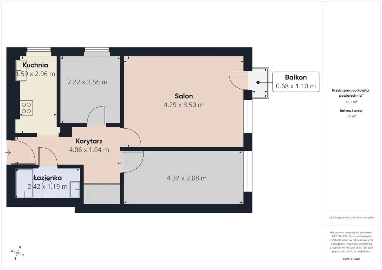 Nieruchomość ma powierzchnię 48 m², a w jej skład wchodzą: