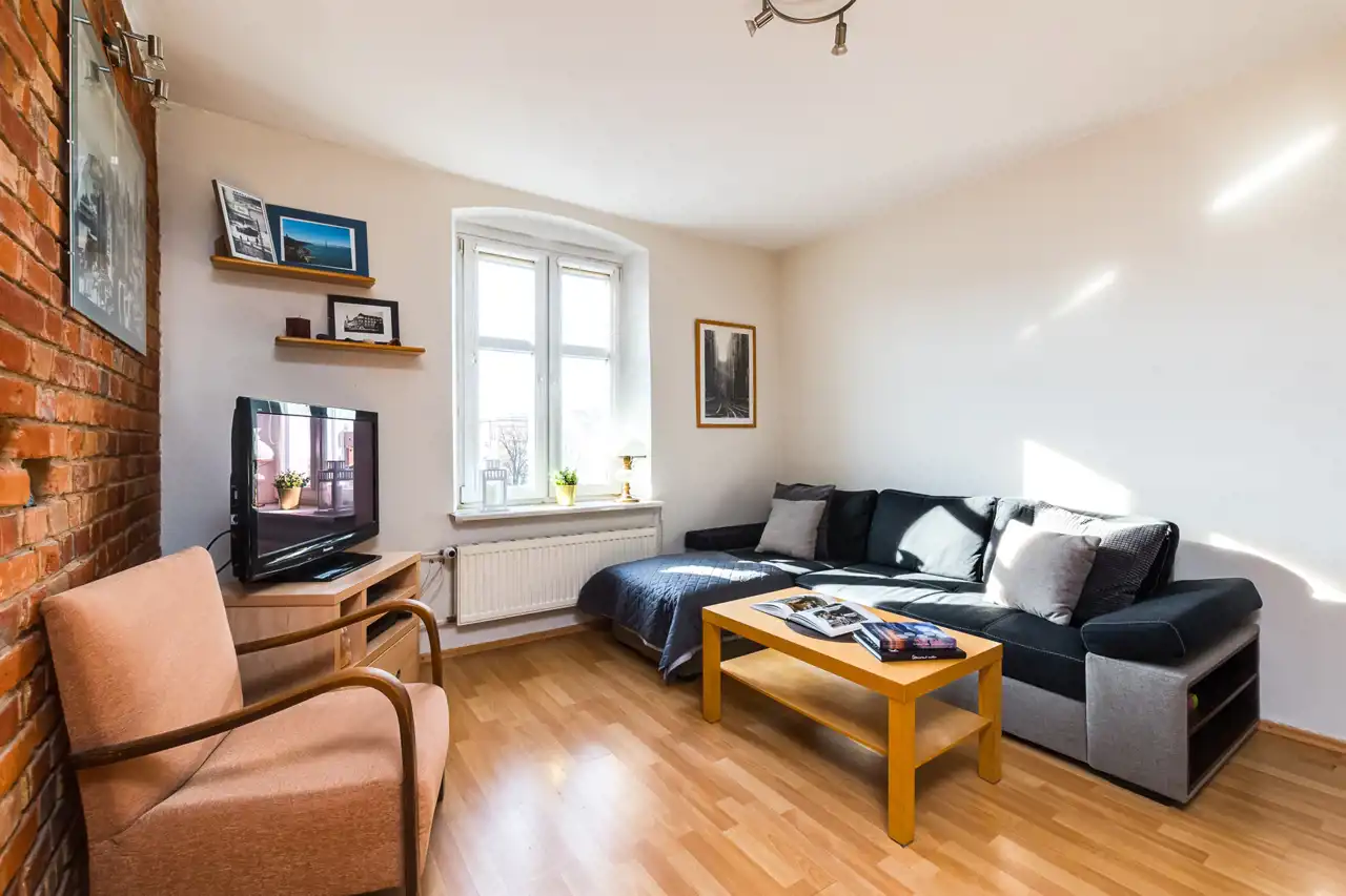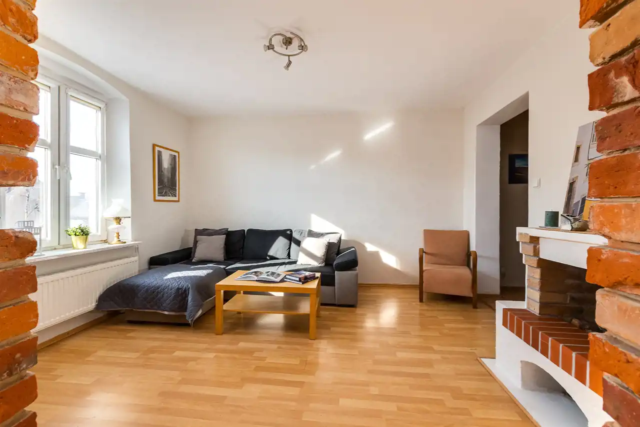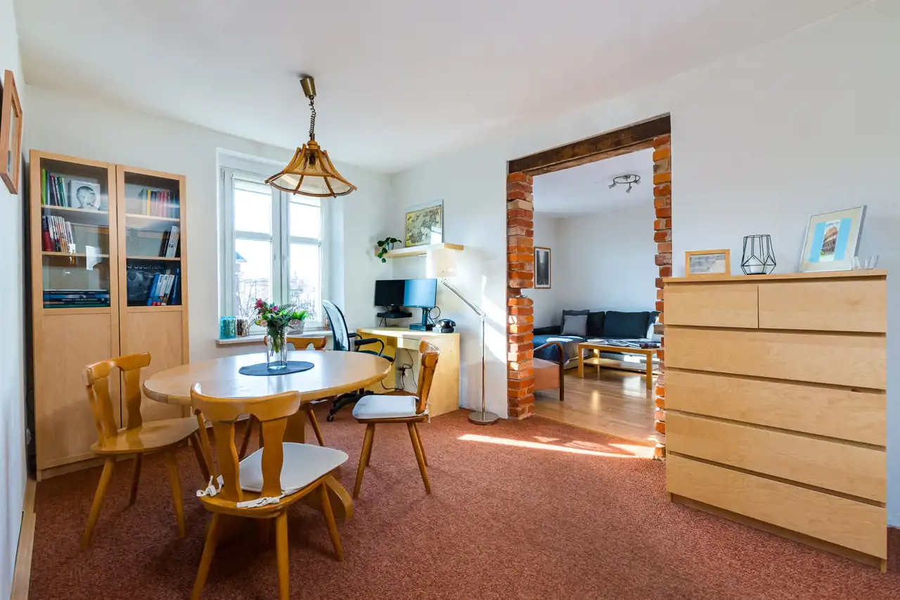 Mieszkanie po licznych adaptacjach i zmianach, m.in. odsłonięcie naturalnej cegły na ścianie, wymianie elektryki, okien i wiele innych. Do lokalu przynależy również piwnica (ok. 15 m2).