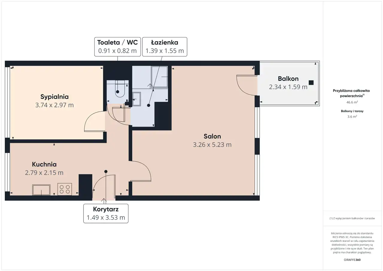- Charakterystyka mieszkania 47.4 m2, 2 pokoje