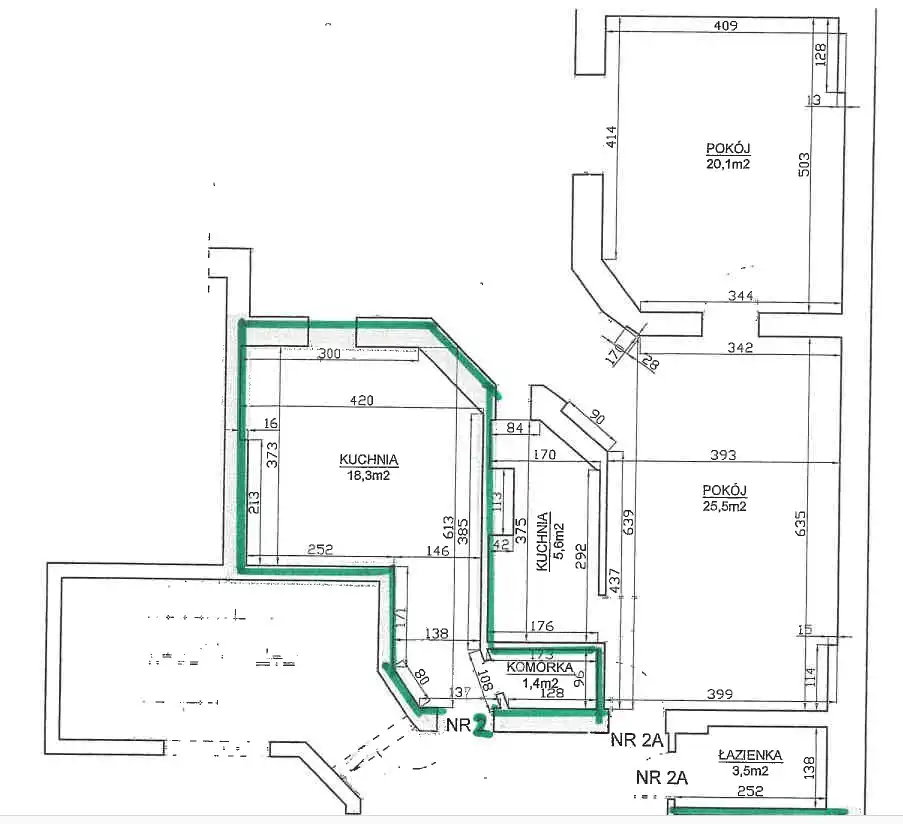 Powierzchnia użytkowa lokalu wynosi 92,4 m². W skład lokalu wchodzą: 3 pokoje, kuchnia, komórka, łazienka. Wyposażony jest w 2 balkony. Kuchnia i łazienka z oddzielnym wejściem z korytarza wspólnego dla lokali 2a i 2. Korytarz stanowi części wspólne budynku. Lokal wymaga prac remontowo-naprawczych.