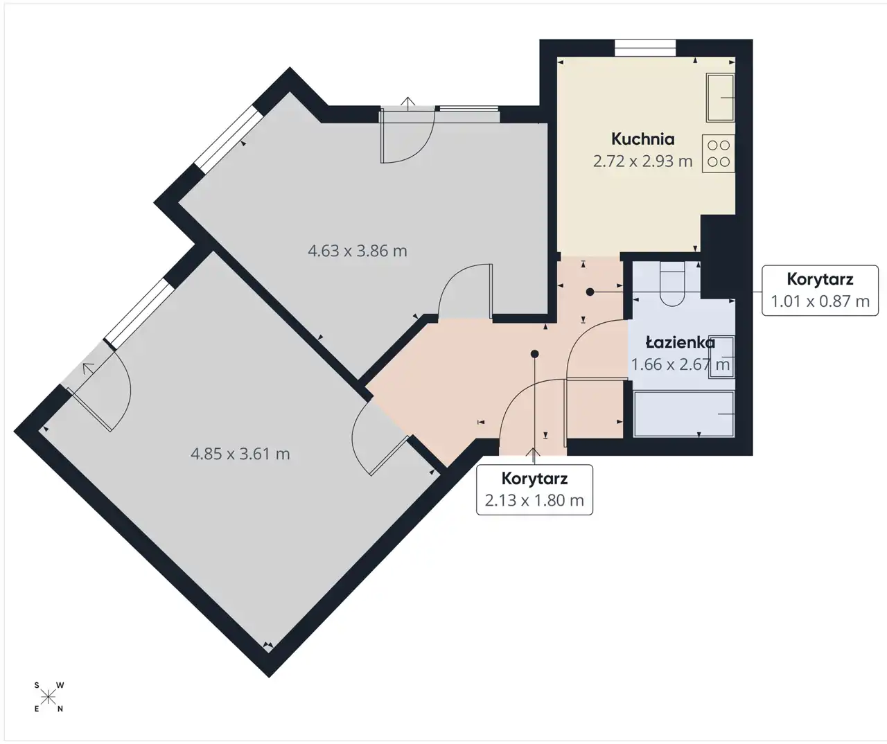 - Charakterystyka mieszkania 52.7 m2, 2 pokoje