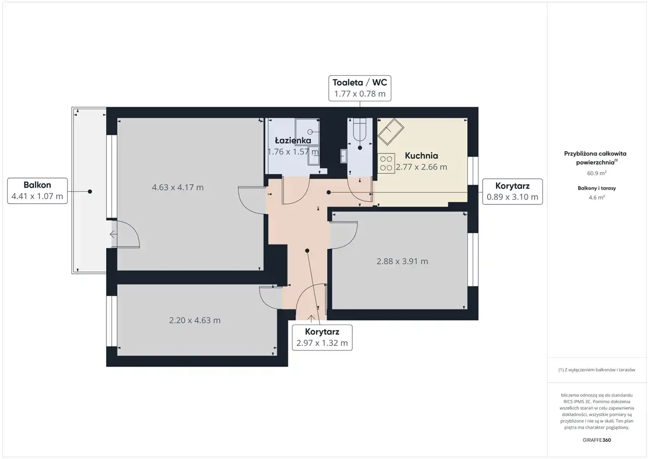 - Charakterystyka mieszkania 61.6 m2, 4 pokoje