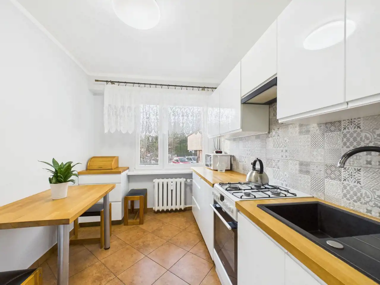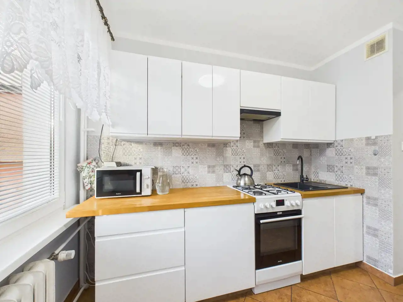 W cenie pozostają stałe zabudowy, w tym meble kuchenne oraz szafy w przedpokoju.