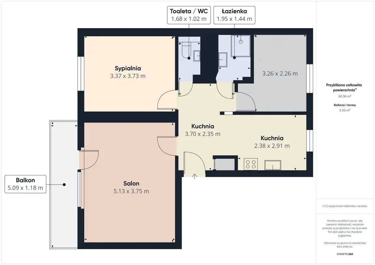 - Charakterystyka mieszkania 61 m2, 3 pokoje