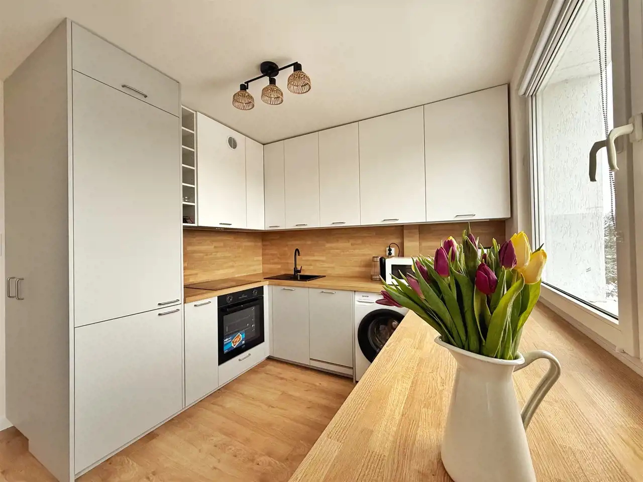 Mieszkanie jest po remoncie, gotowe do zamieszkania. Składa się z dwóch oddzielnych, ustawnych pokoi, kuchni z dużą jadalnią, łazienki z prysznicem oraz przedpokoju z pojemną szafą.