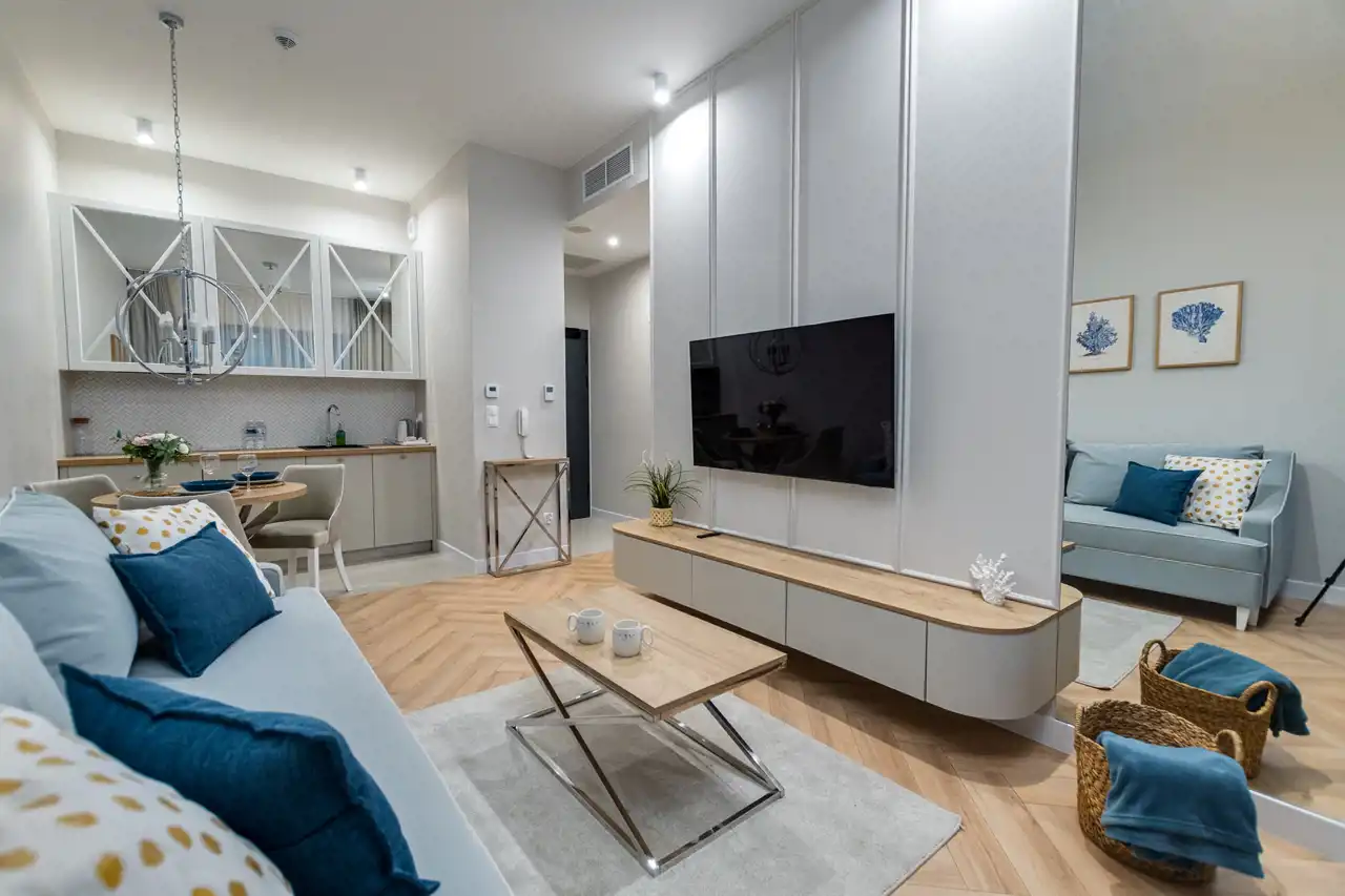 - Wykończone nowocześnie, z użyciem wysokiej klasy materiałów — gotowe do natychmiastowego użytkowania lub wynajmu.