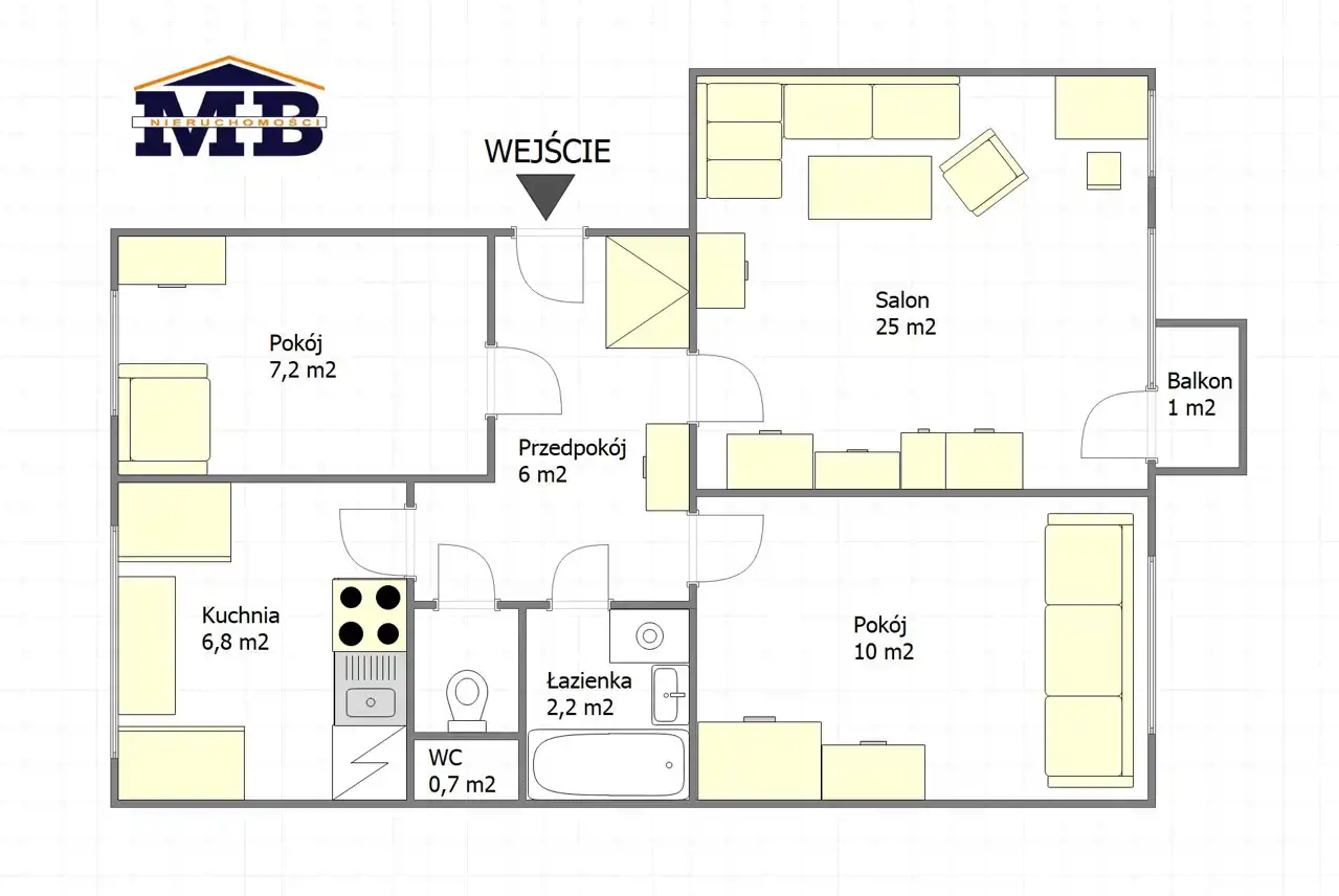 - Charakterystyka mieszkania 57.9 m2, 3 pokoje