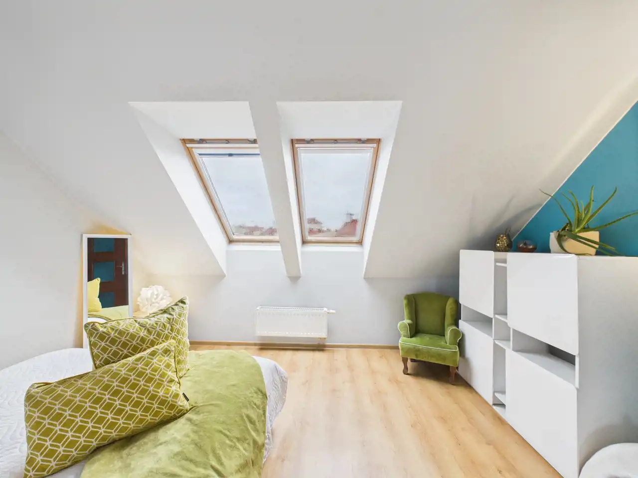 Poddasze użytkowe ( umowa dzierżawy, wyłączne użytkowanie przestrzeni dla właściciela mieszkania) o powierzchni 30,7 m² daje szerokie możliwości aranżacyjne — idealne jako dodatkowa sypialnia, domowe biuro lub przytulna strefa relaksu.