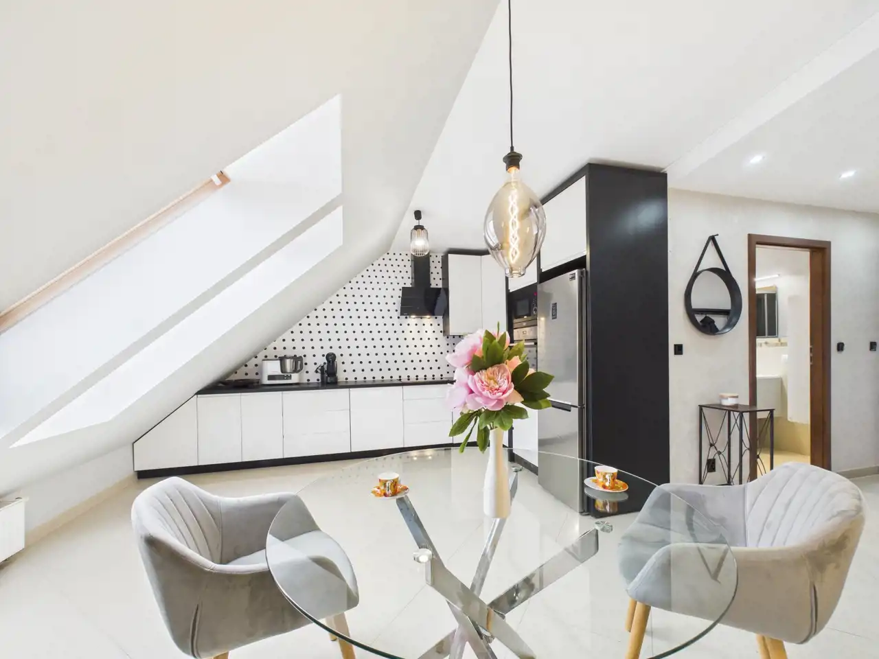 Do mieszkania przynależy użytkowe poddasze (30.7 m2 powierzchni całkowitej), które można zaaranżować jako sypialnię, biuro lub strefę relaksu.