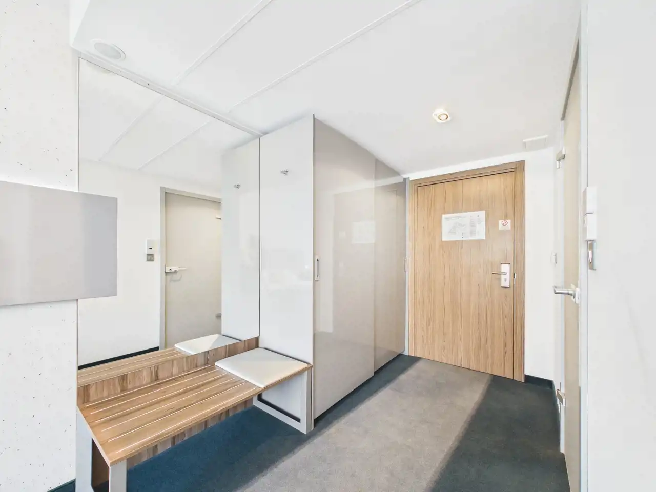 Sam apartament jest dość przestronny, składa się z pokoju oraz prywatnej łazienki. Posiada wyjście na wspólny taras.