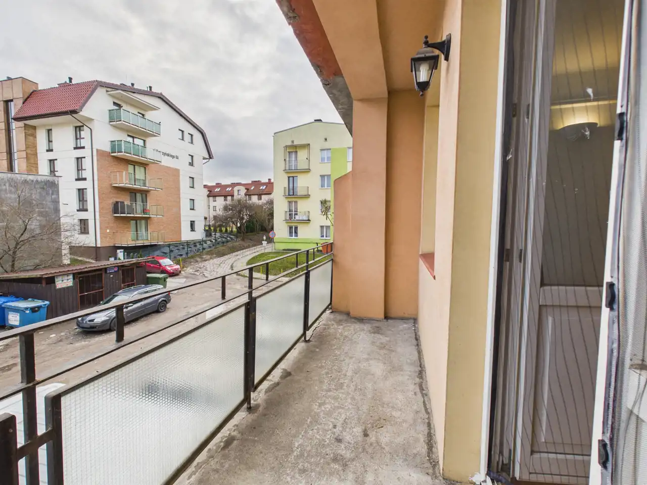Wewnątrz osiedla parking dla mieszkańców.