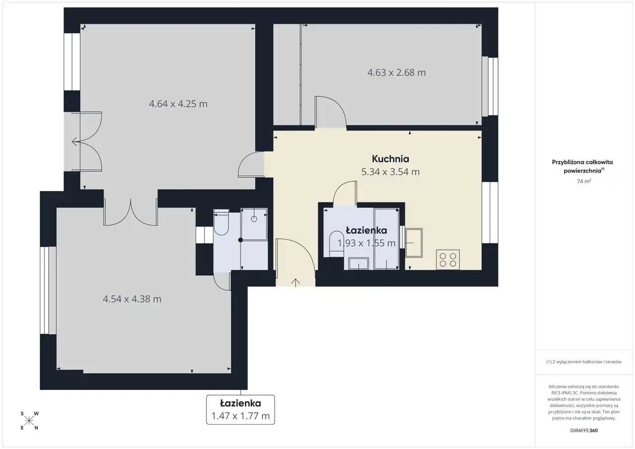 - Charakterystyka mieszkania 74 m2, 3 pokoje